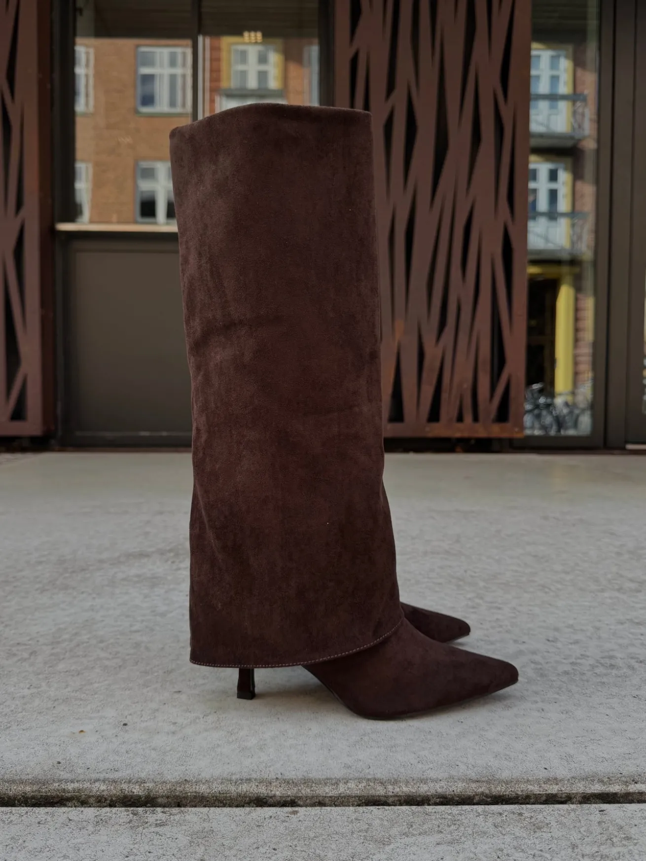 Agnes støvlerne har en spids hæl. De har en fold over støvlen og en spids snude. De er perfekte til hverdag og festlige lejligheder.
