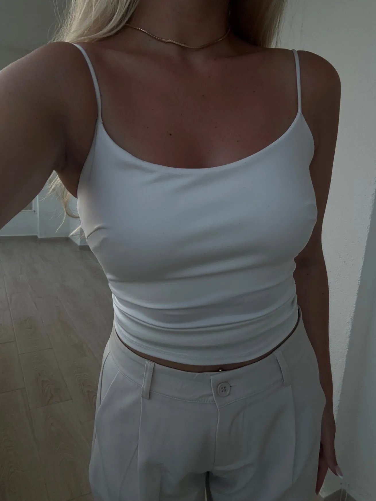 Anne toppen har de fineste spaghetti stropper. Den har en dyb udskæring og er perfekt til sommeren.