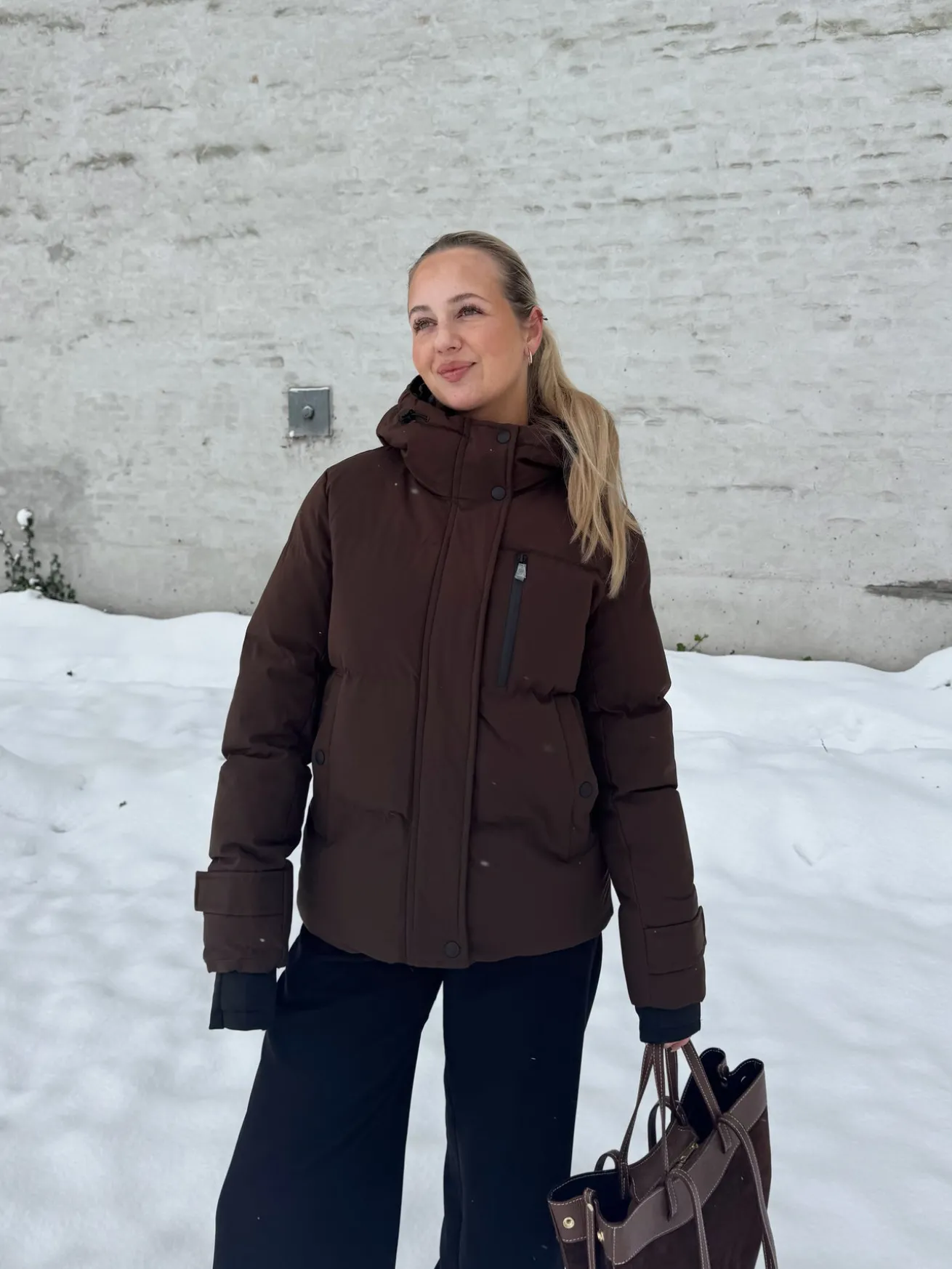 Caya jakken har har en høj hals og hætte den har en ekstra lomme ved brystet og 2 i siden.