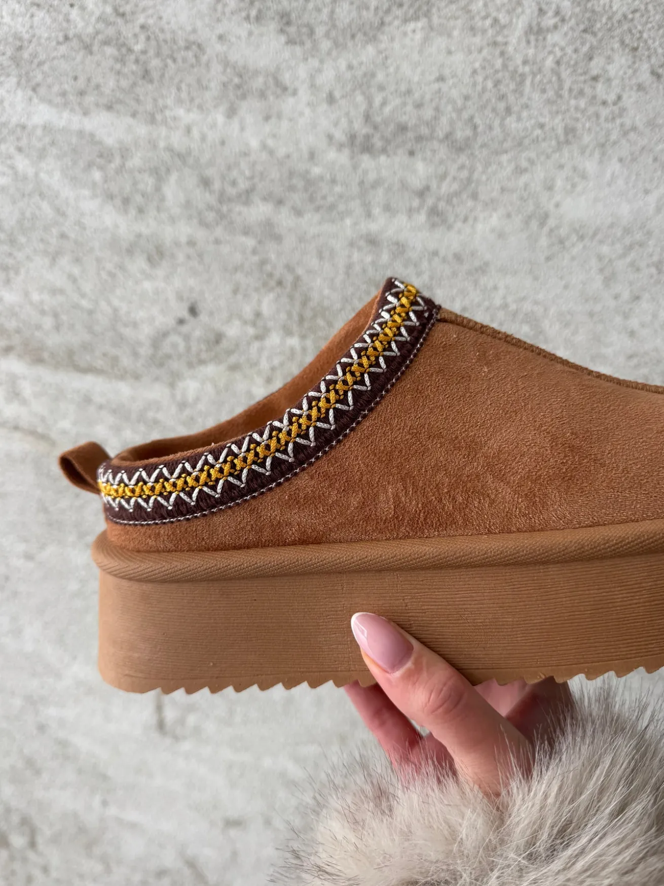 Vores Frida bamsesko har en chunky sål og er dejligt varme og bløde at have på!