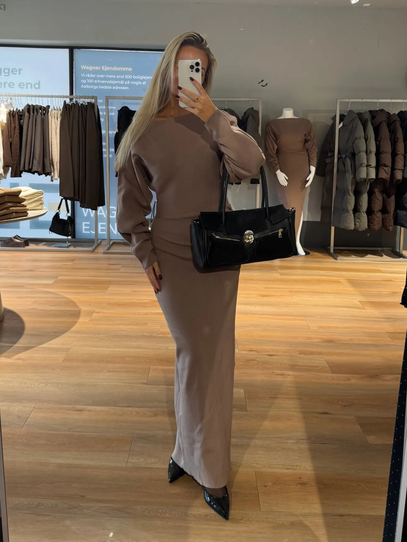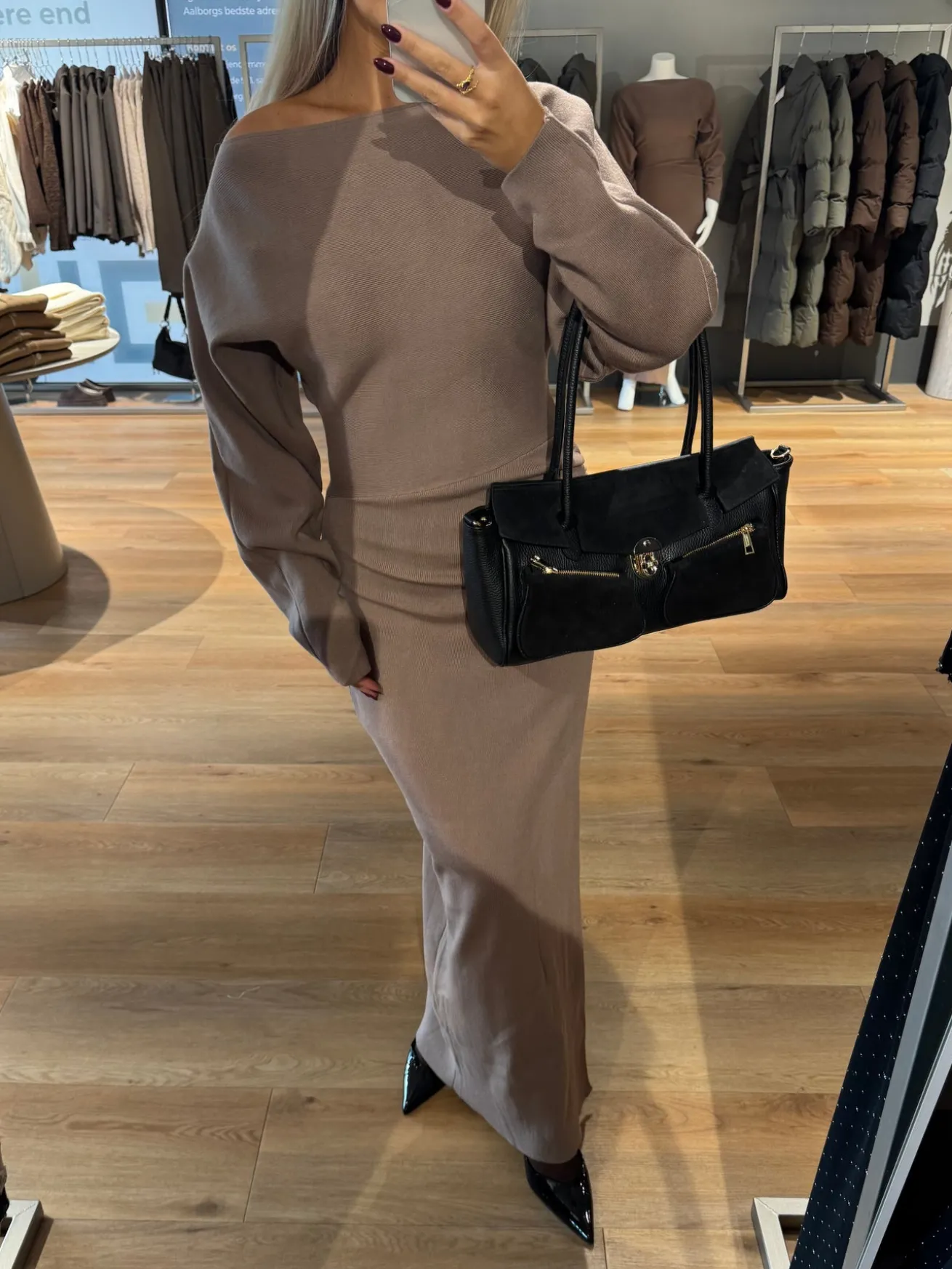 Jenny strikkjolen er perfekt til efteråret – den fine strik holder dig varm på de kolde dage. Den har scrunch i siden og på ærmerne, som giver den ellers klassiske kjole et pint.