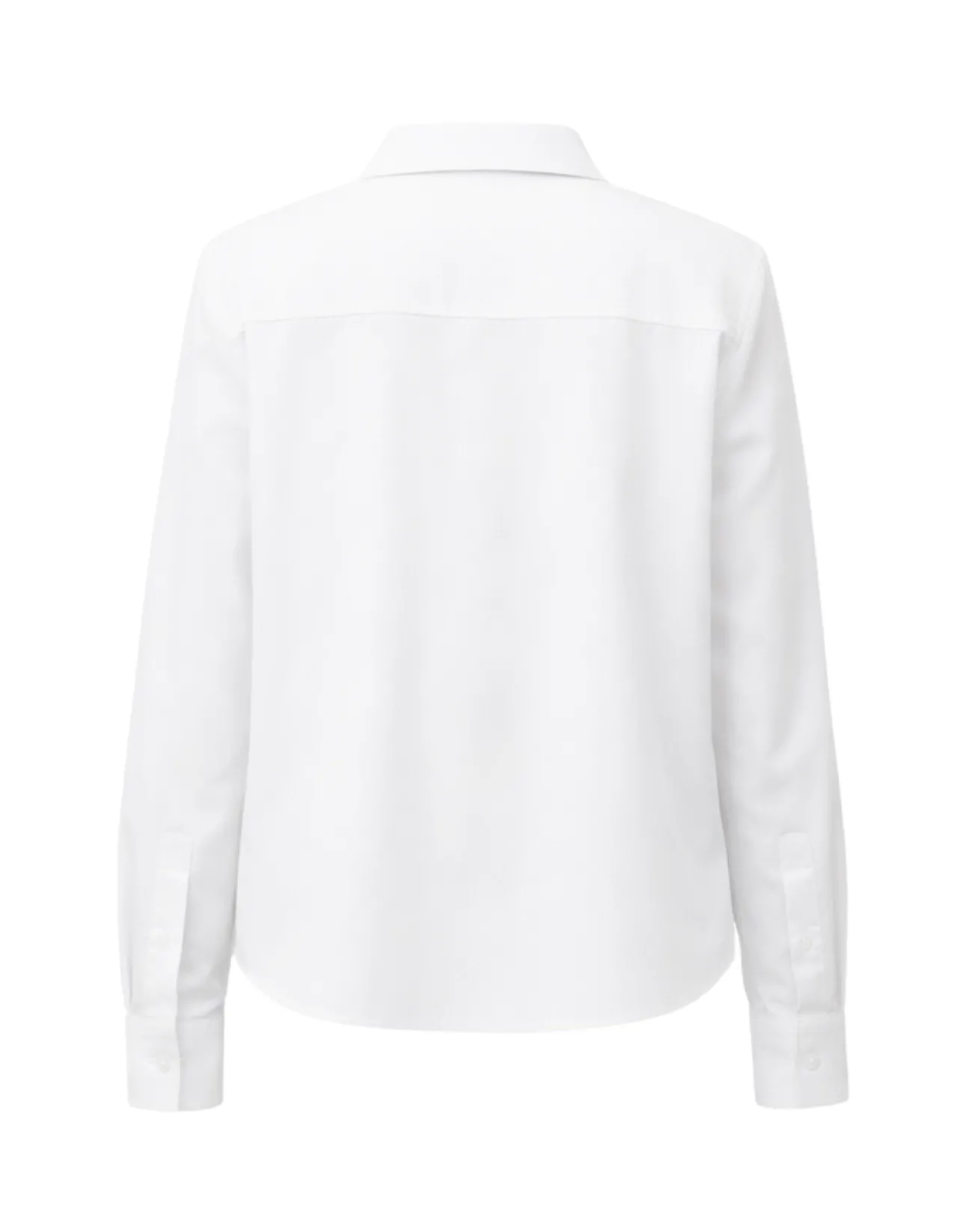 Denne hvid skjorte har et klassisk, let løstsiddende snit, der giver et moderne og elegant udtryk. Skjorten er cropped boxy fit. Det rene design sikrer en flot pasform med god bevægelsesfrihed, mens det lette og behagelige materiale gør skjorten ideel til både hverdag og arbejde. Den lyseblå farve gør den nem at style med jeans, bukser eller nederdel og skaber et tidløst look med et afslappet touch.