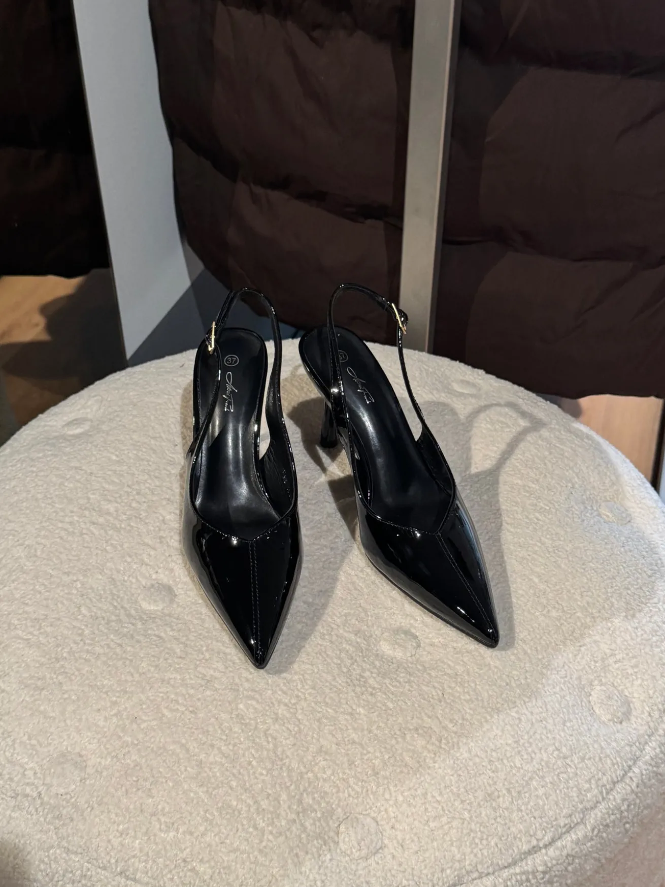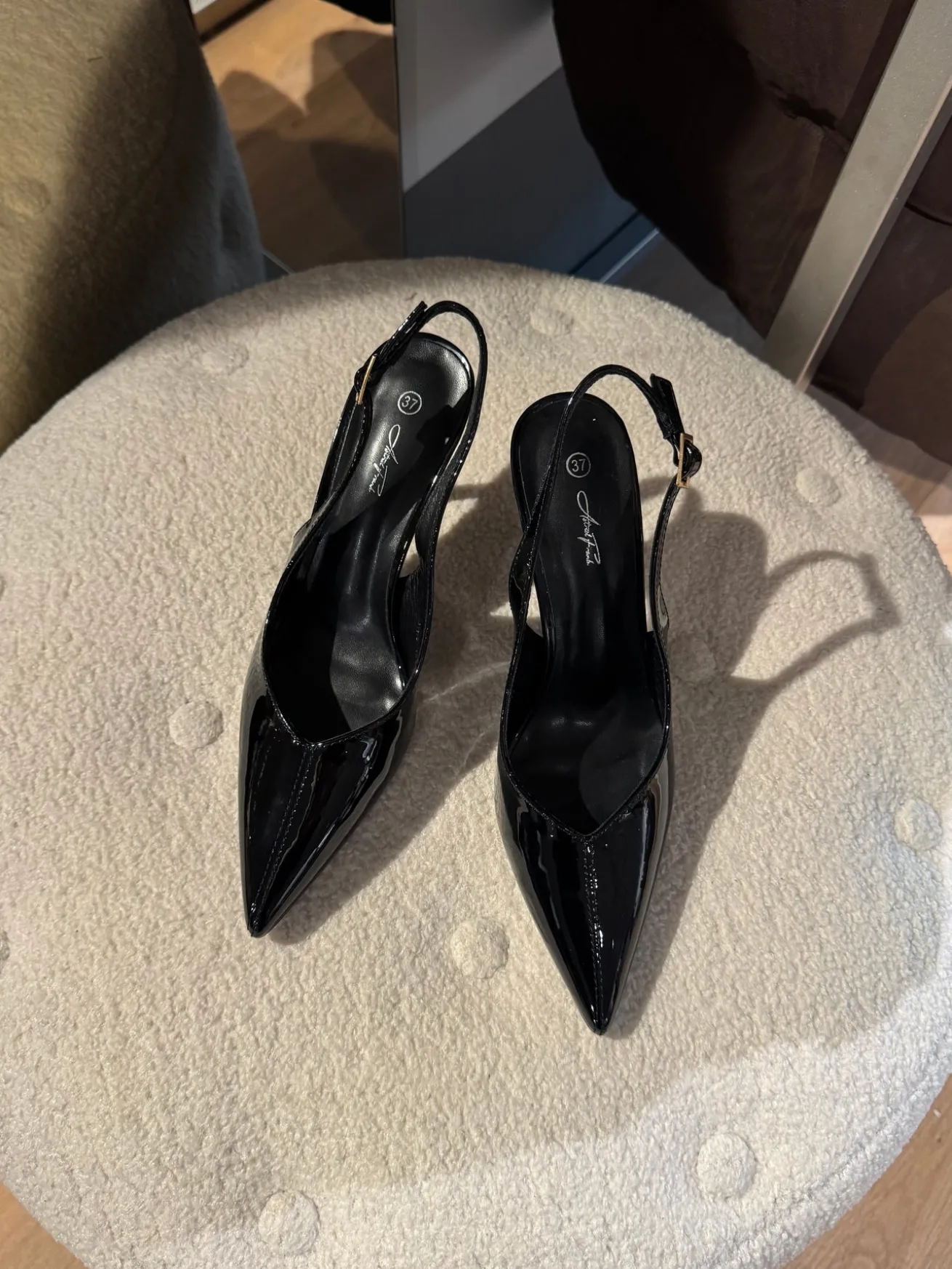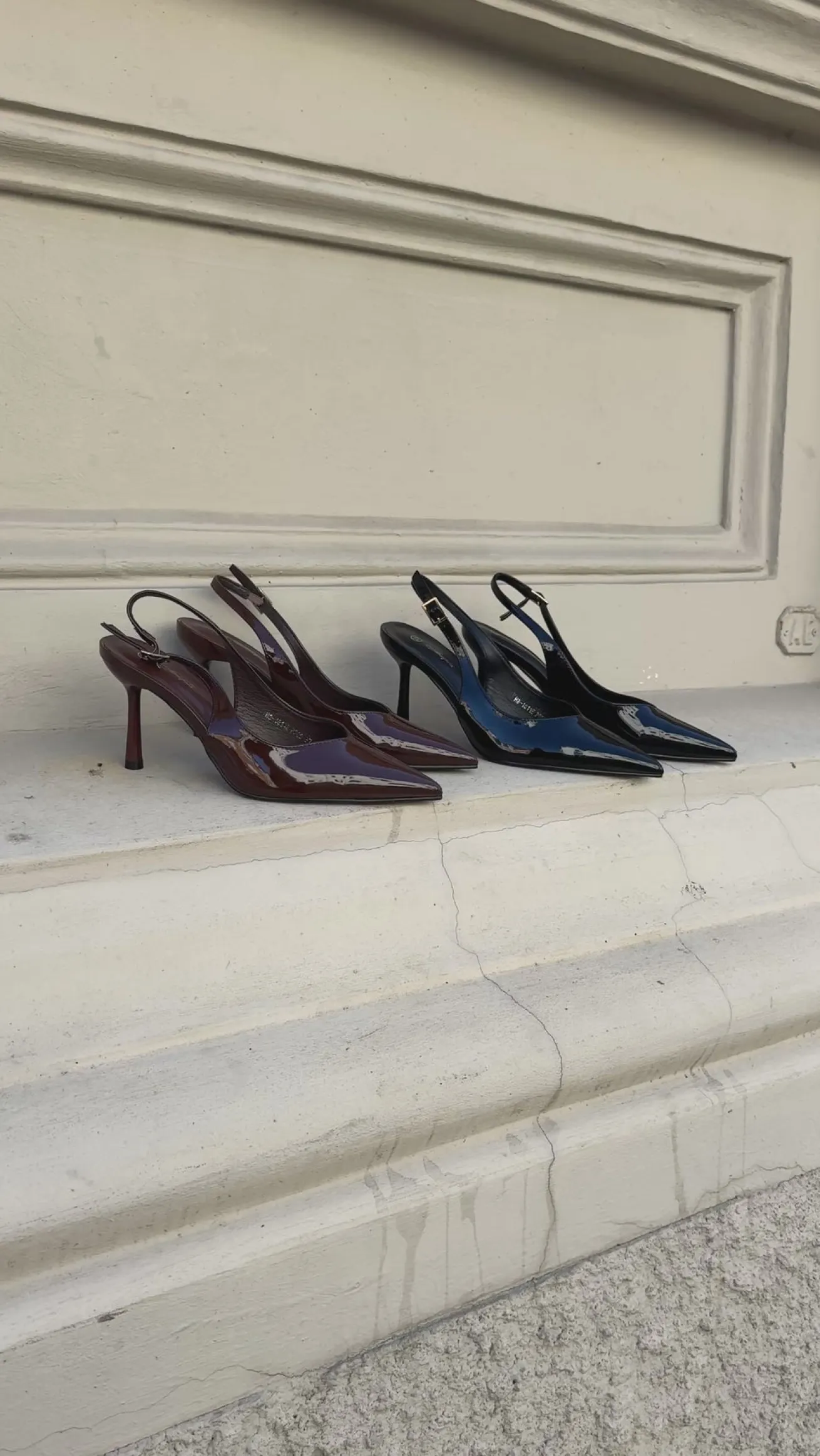 Karla stiletterne har et spids snude og har en rem bagtil som kan justeres efter ønske. Stiletten er perfekt til efteråret og har den smukkeste farve.
