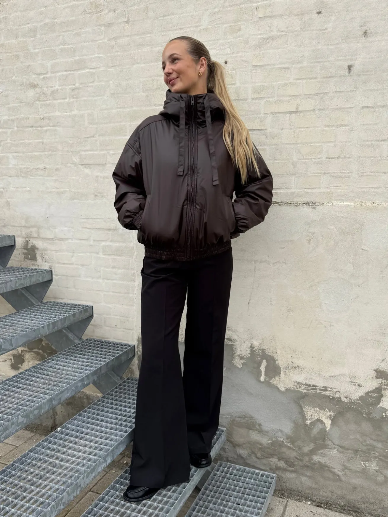 Maxine jakken har en høj hals og en varm hætte. Jakken er perfekt til de kølige efterårsdage og kan strammes ind i halsen. Den perfekte overgangsjakke.