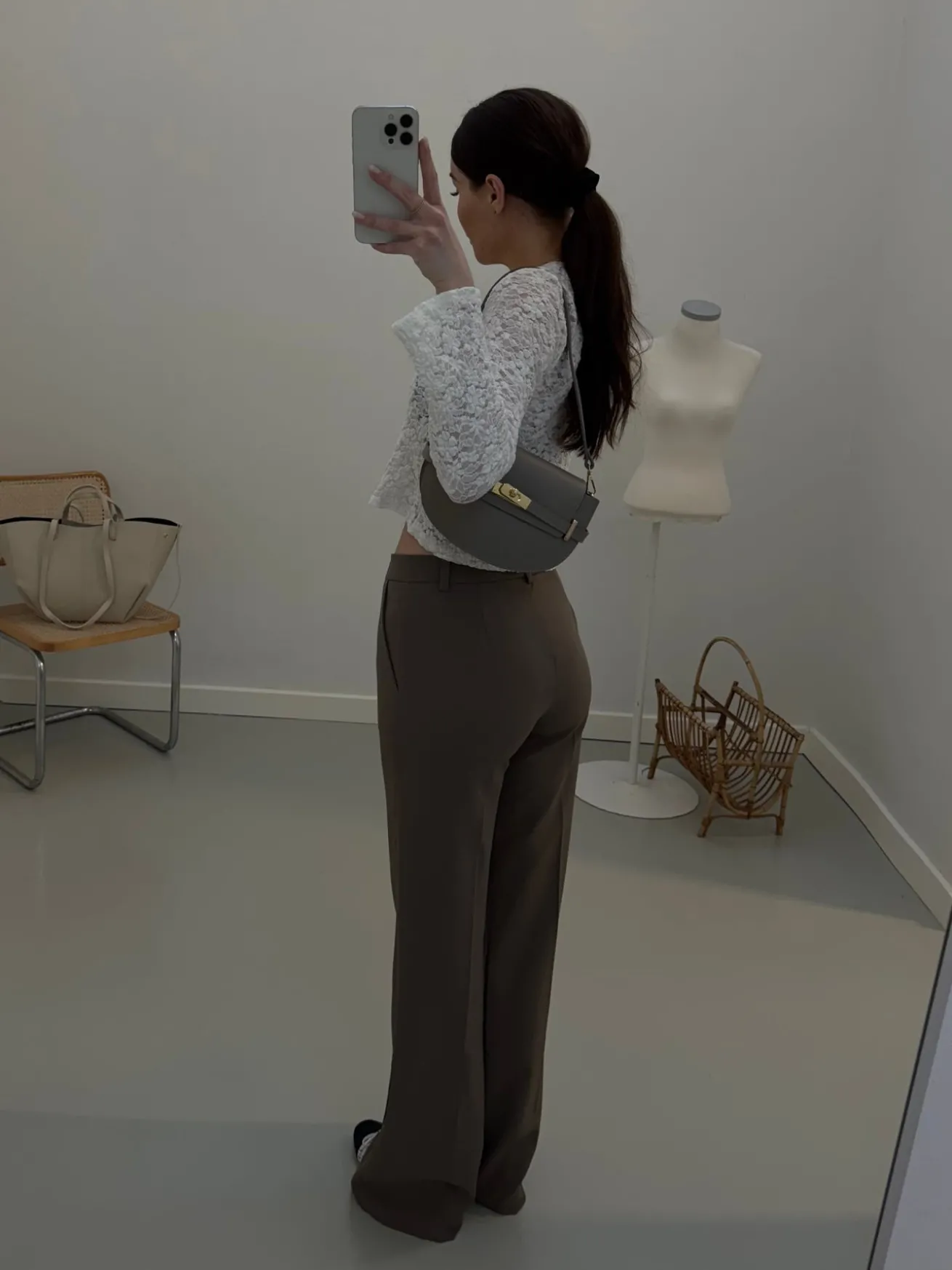 Elegante og strækbare habitbukser. Bukserne har vidde i bunden og spændes med en knap i livet. Styles perfekt med et par sneakers eller stiletter.