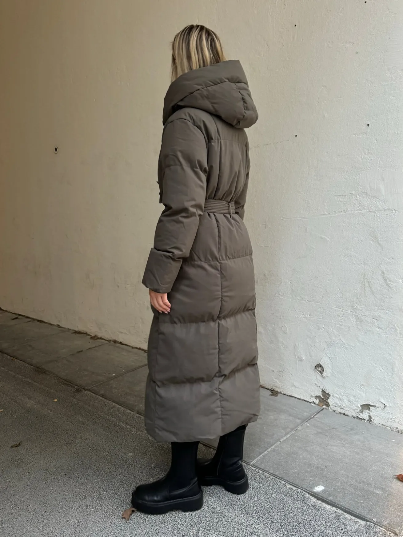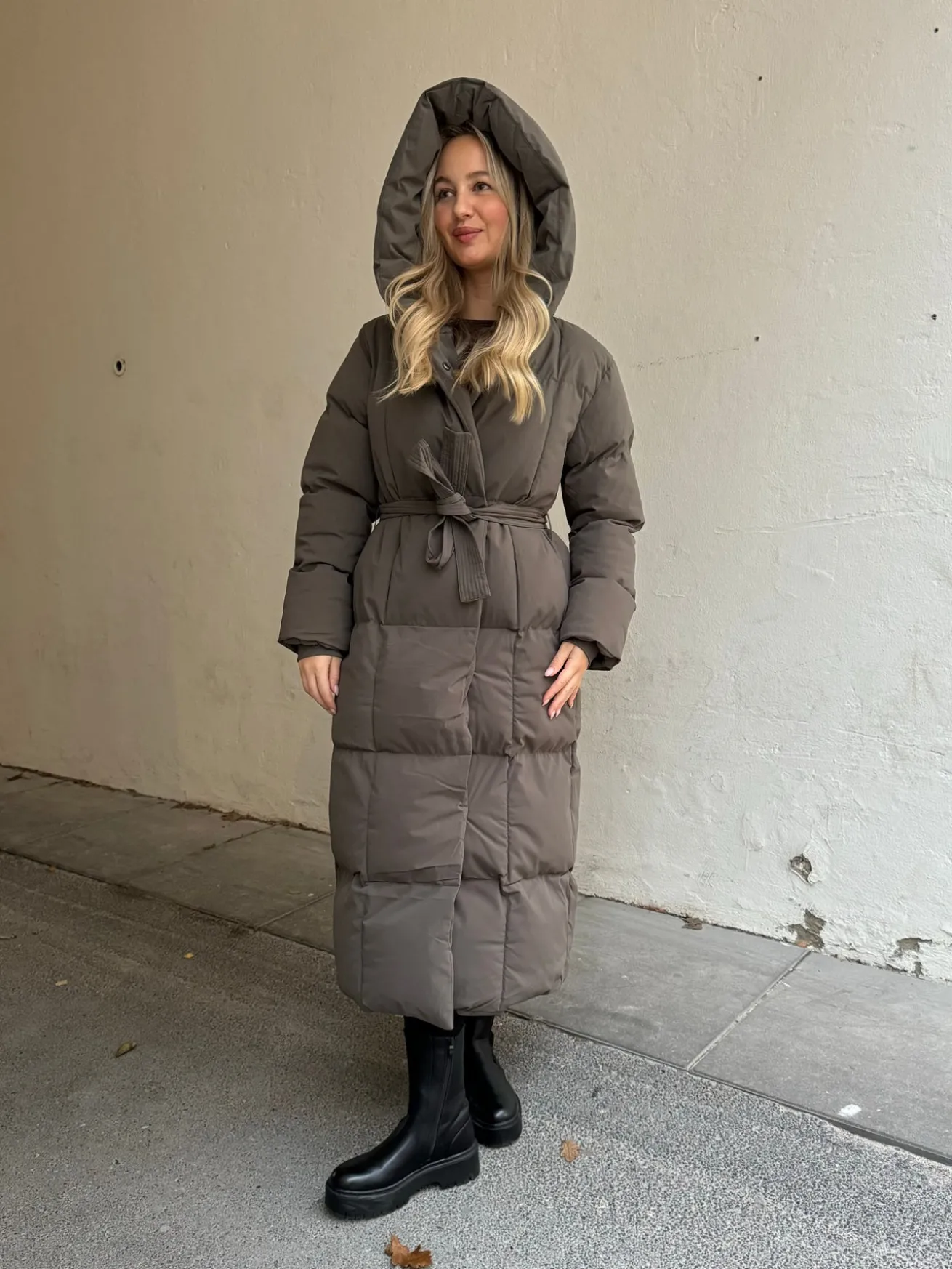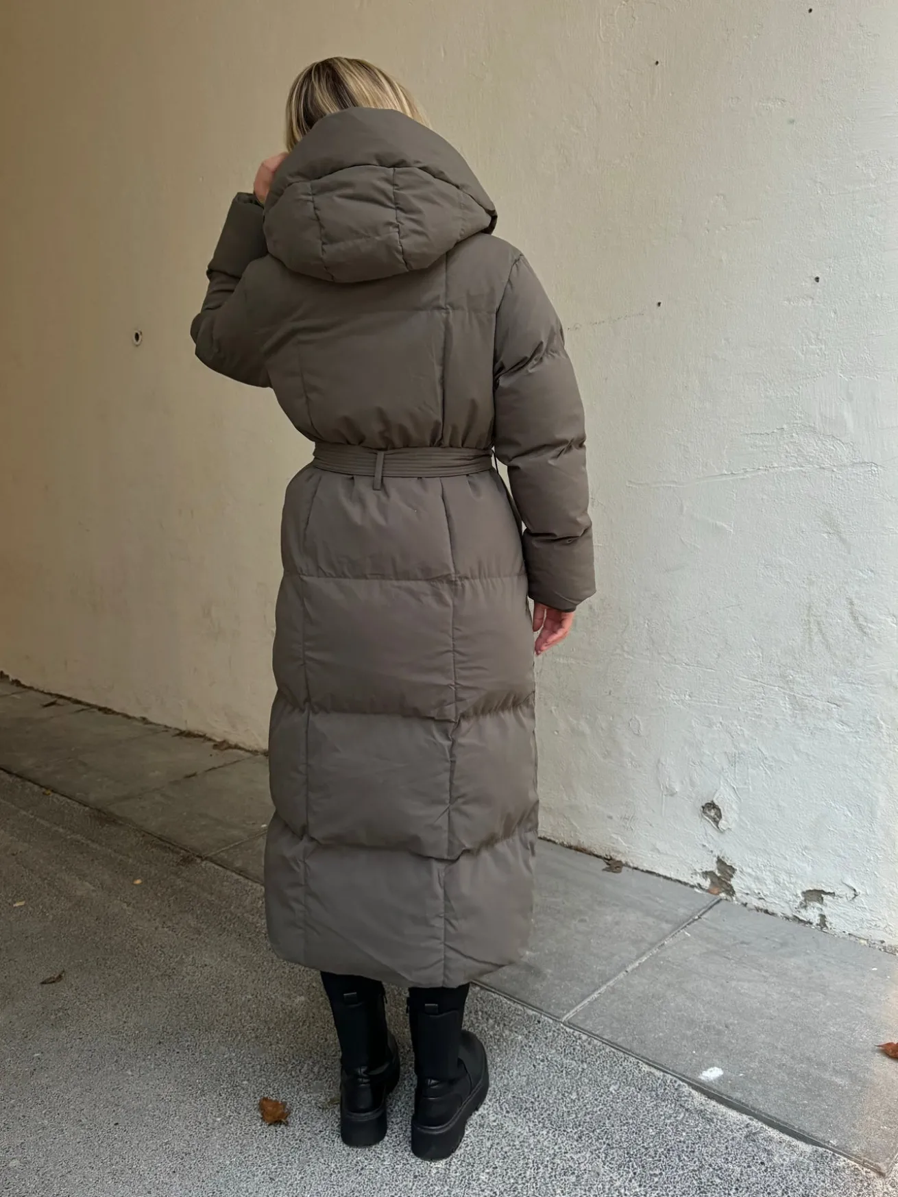 Naja jakken har et bindebånd og en hætte. Den er dejlig varm og kraven er høj, så man kan holde varmen selv i det kolde vintervejr. Jakken lukkes kun med knapper og bindebånd.