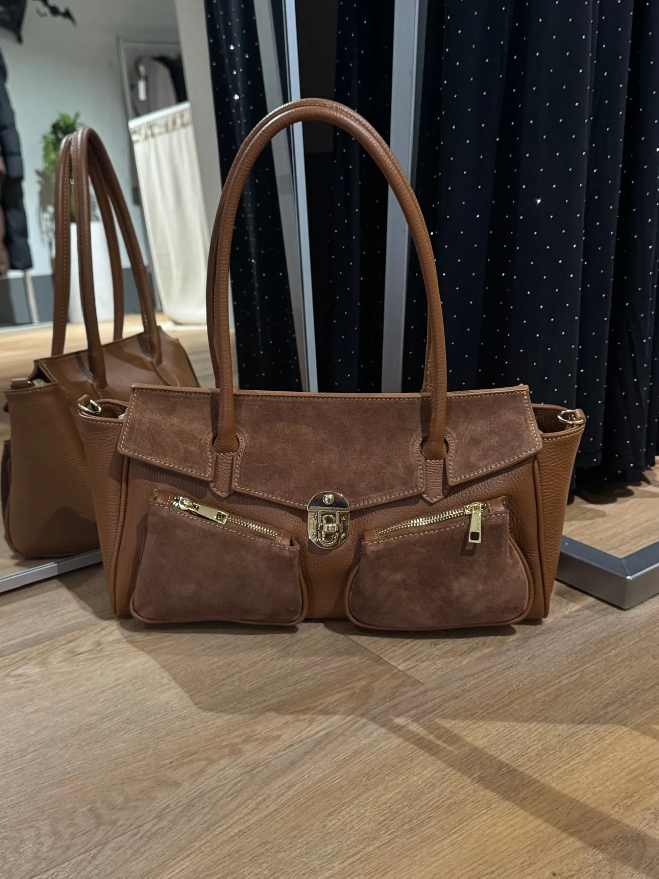 Natalie tasken har de fineste detaljer og lukkes fortil med en klip, den fine taske kommer med en ekstra rem, så du også kan sætte den på skulderen.