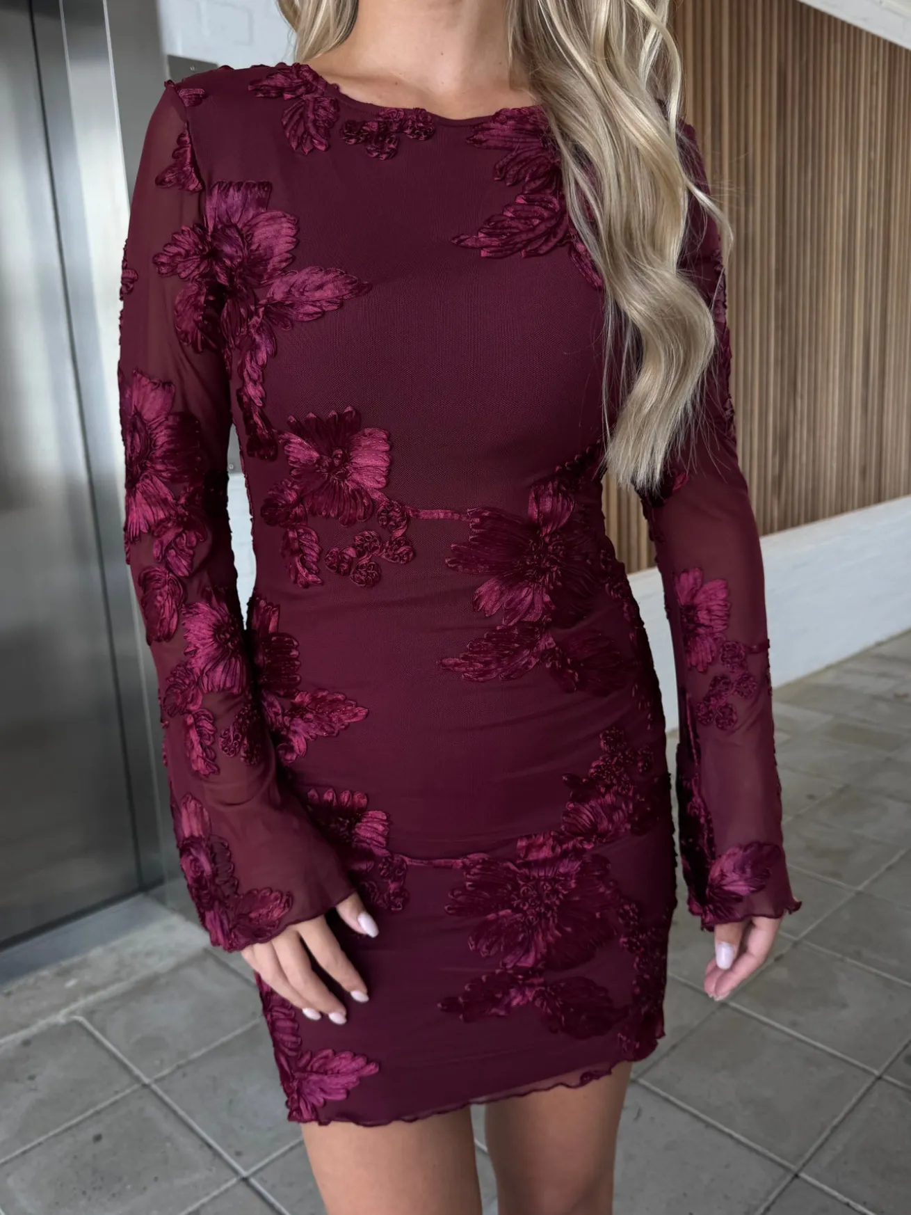 Olivia kjolen har brede ærmer og en rund udskæring. Kjolen har det smukkeste mønster i form af blomster på kjolen og er perfekt til alle årets festligheder.