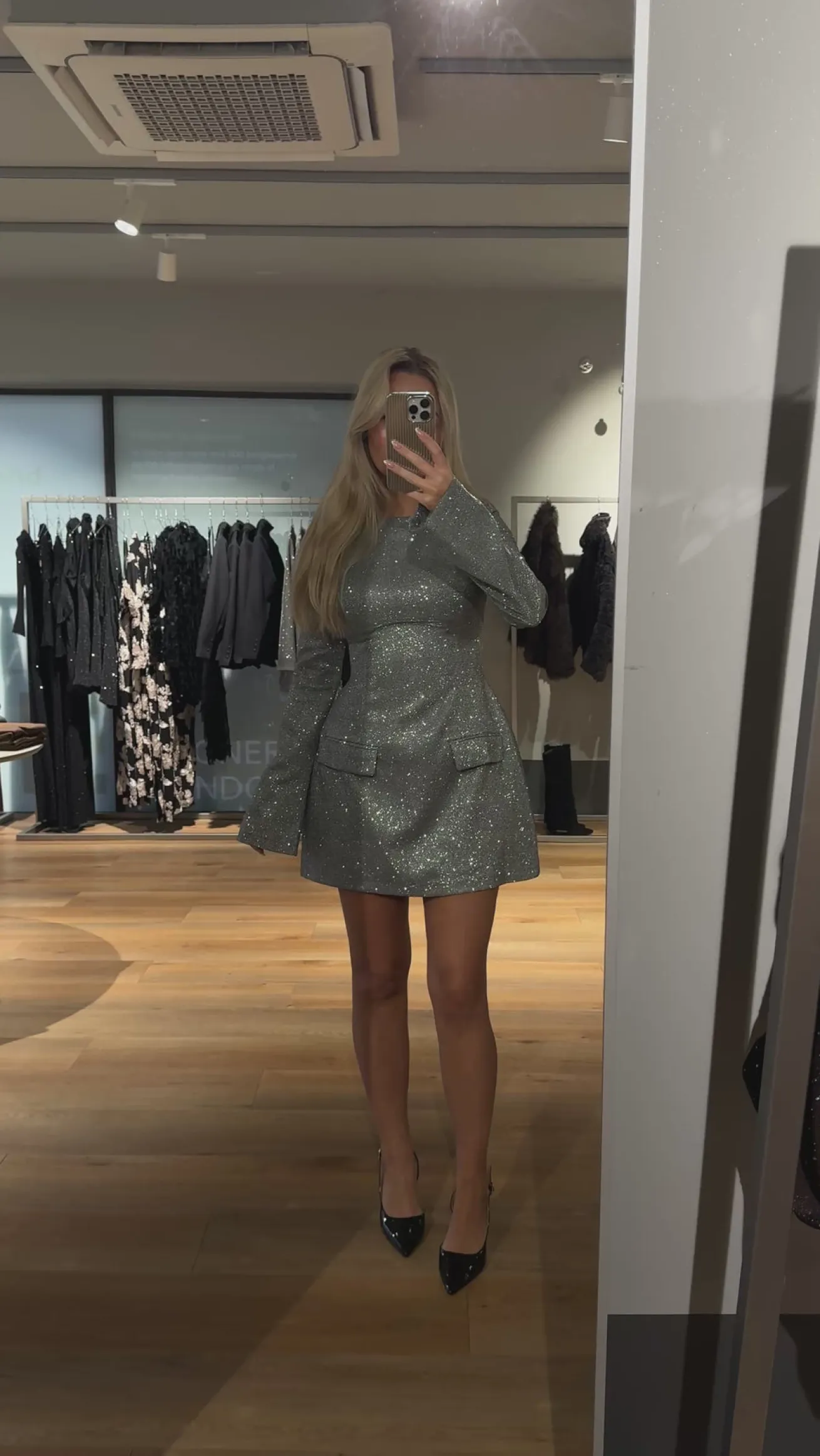 Ophelia kjolen er tætsiddende foroven og går ud i en a-form. Kjolen har glimmer i stoffet. OBS.! Glimmeret i stoffet kan smitte af! Den skal håndvaskes.