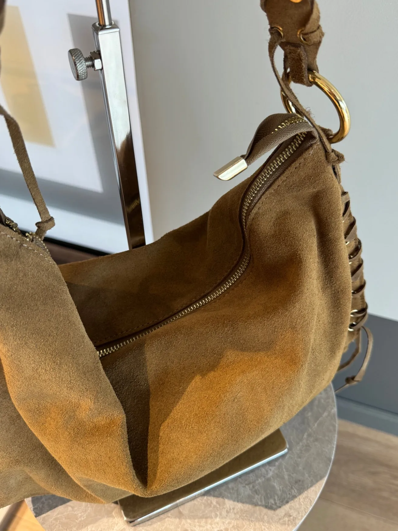 Rachel tasken har de fineste detaljer og kommer med en indvendig lynlåslomme. Tasken lukkes med en lynlås.