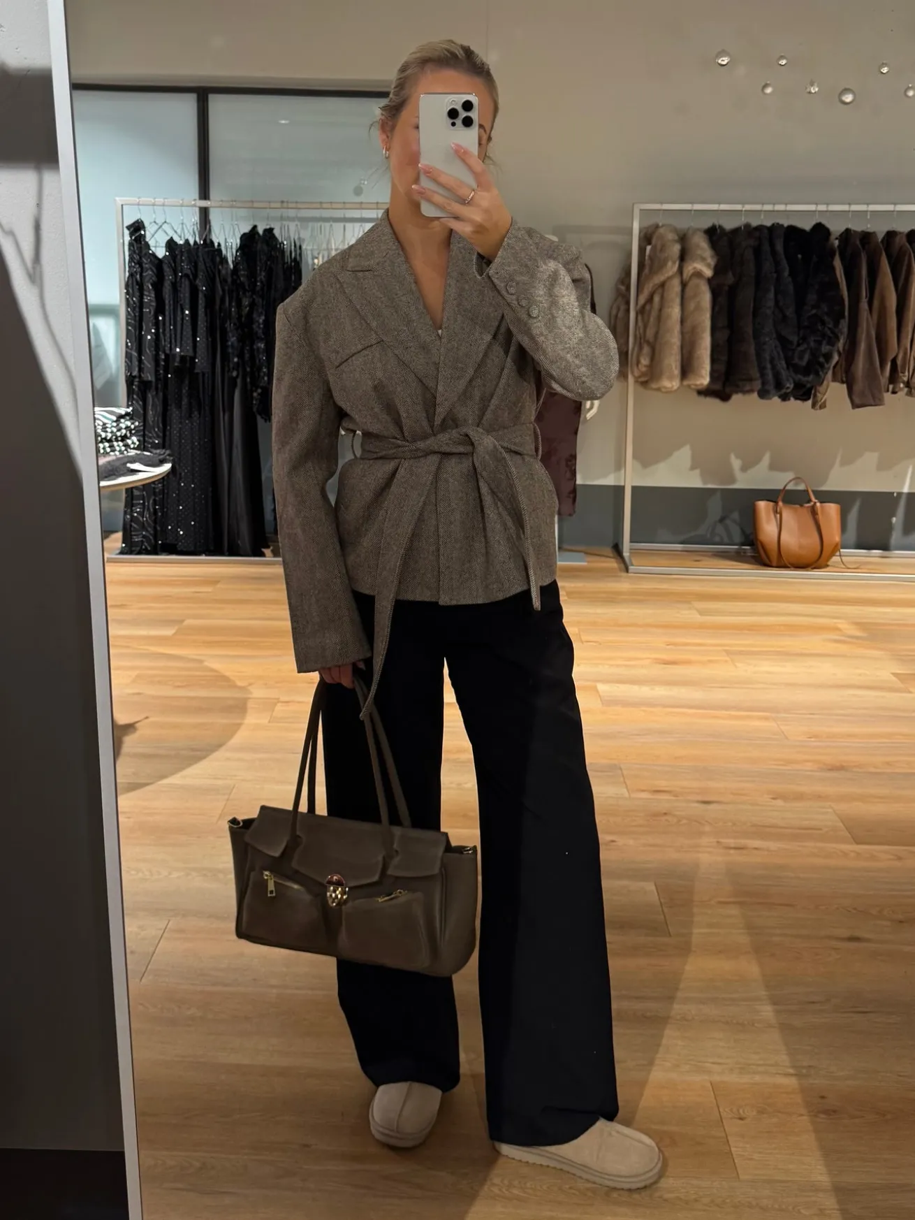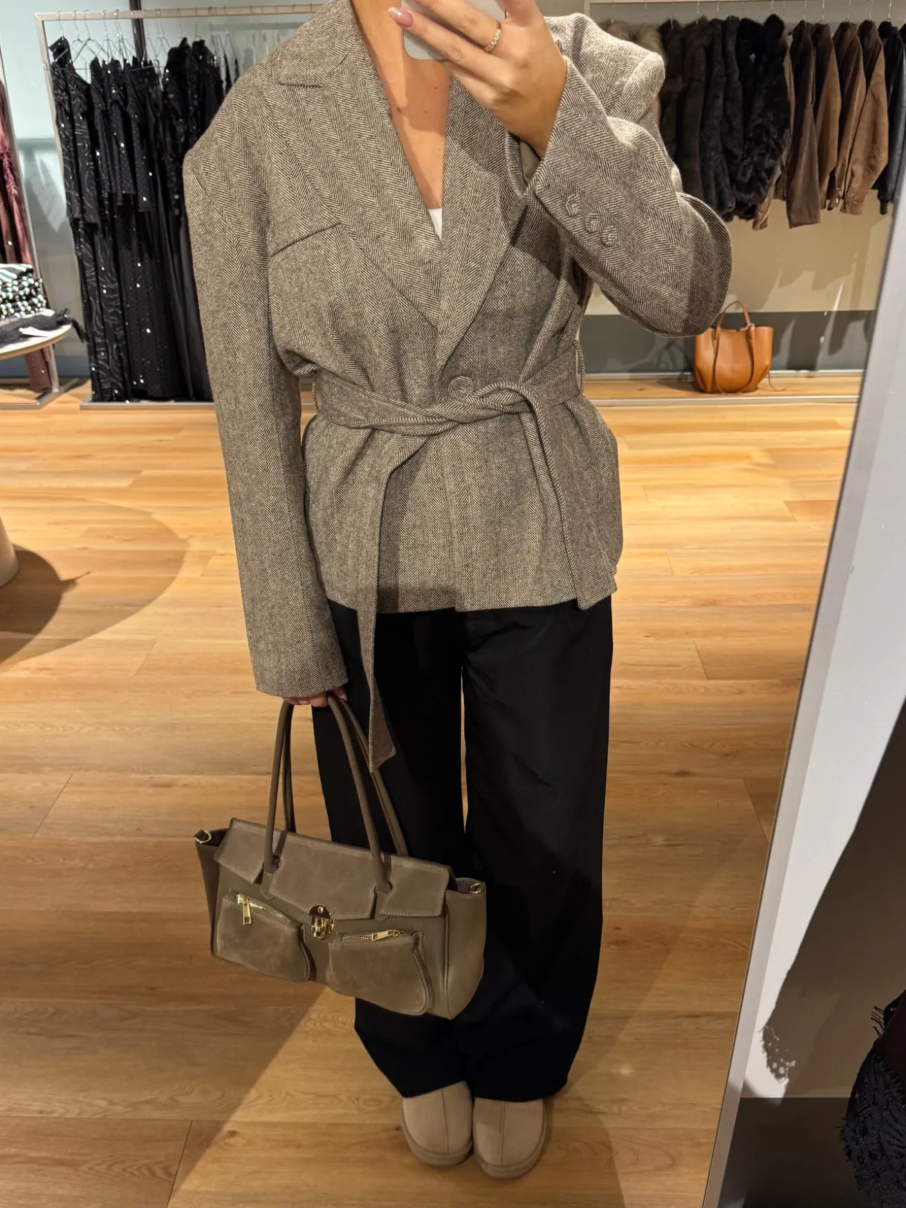 Selma jakken er perfekt til hverdag. Den fine jakke kan bruges som både jakke og som en blazer og den er skøn at have på. Jakken har et tykt stof og du kan binde den i taljen efter ønske, eller lade den stå åben, hvis du ønsker et mere boxy look.