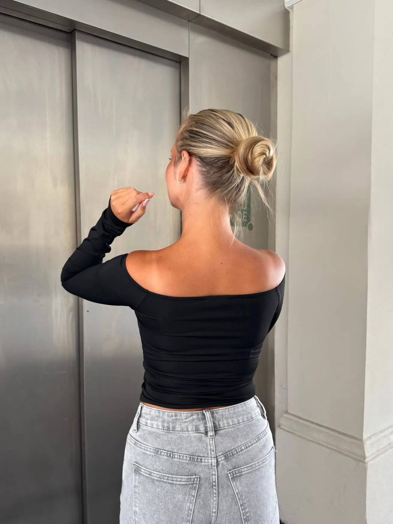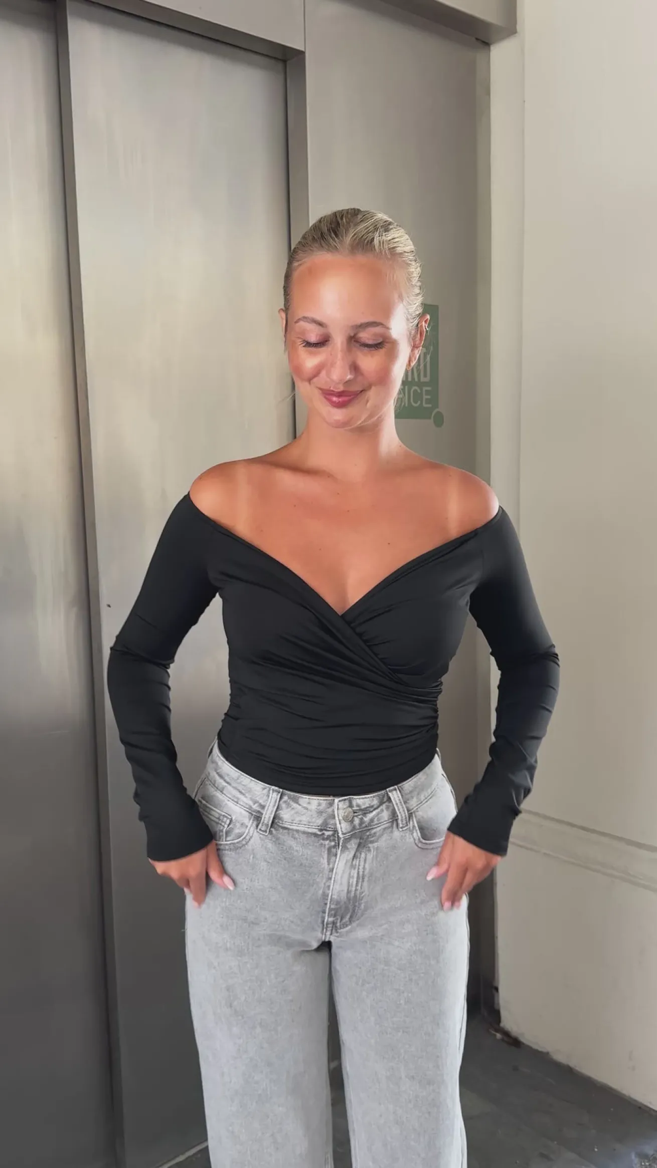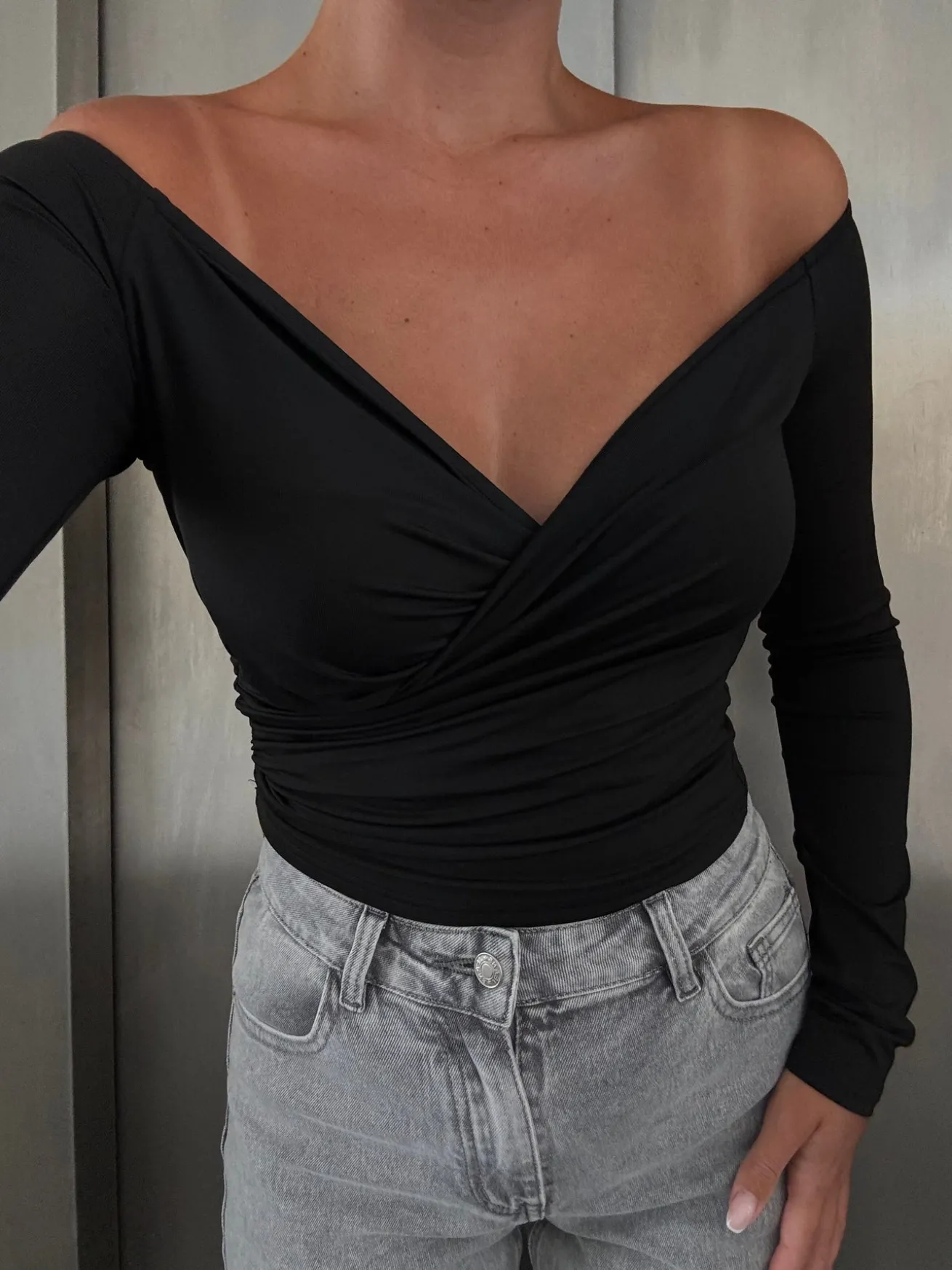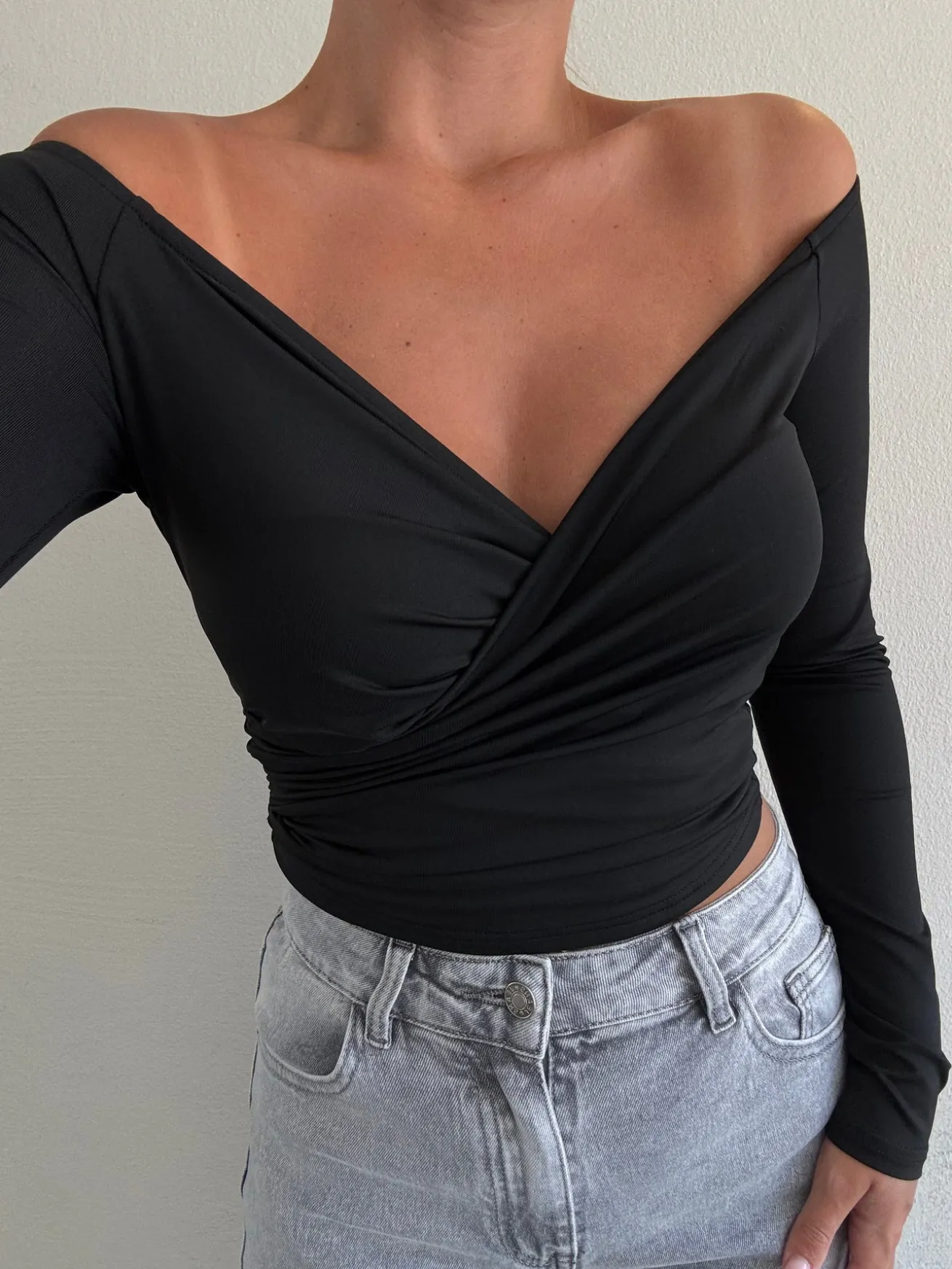 Sienna blusen har et wrap-cut og er strækbar. Blusen kan sættes både off-shoulder og på skulderen. Den fremhæver figuren og er behagelig at have på.