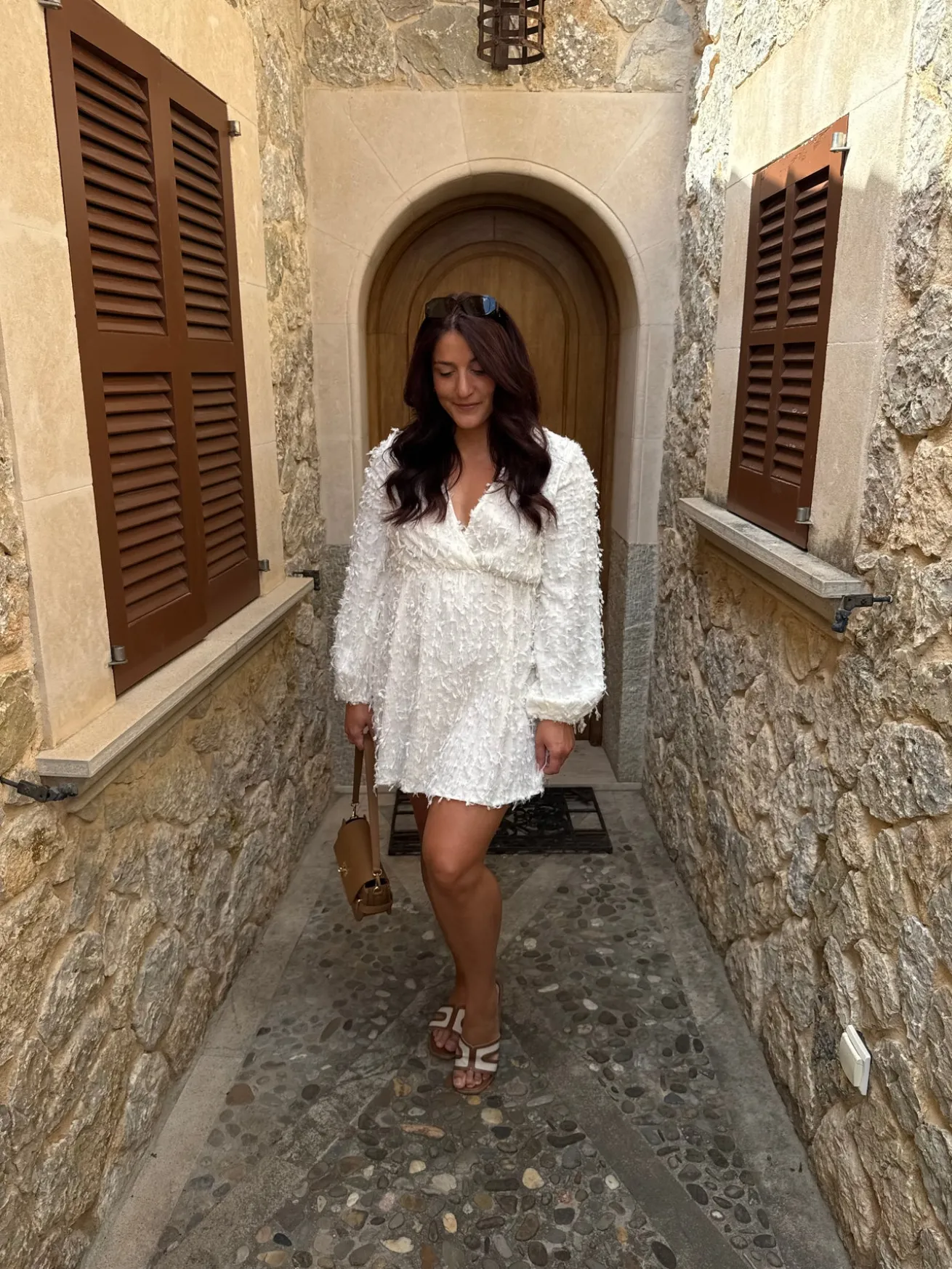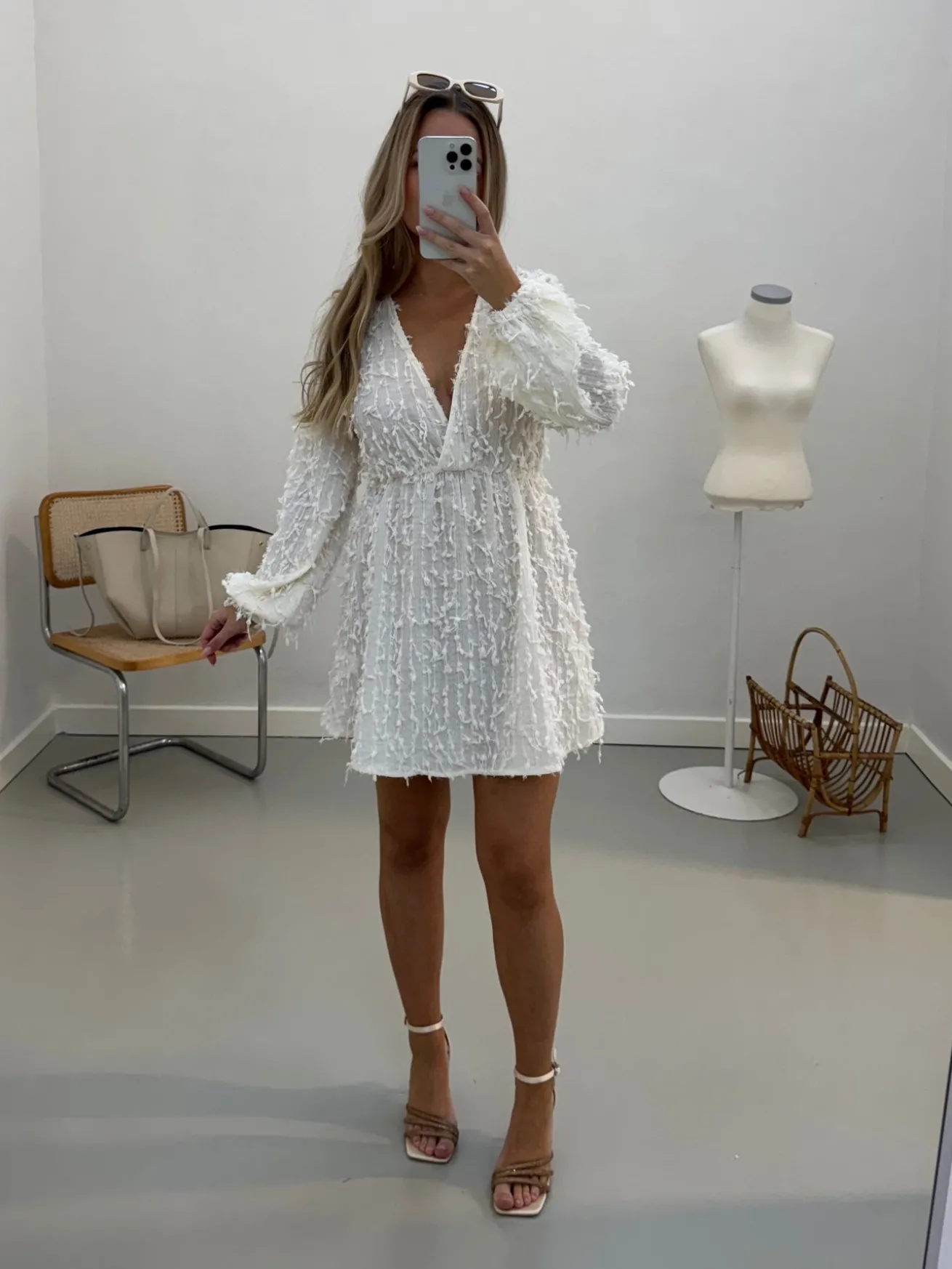 Sofie kjolen er perfekt til studenterfesterne og alle sommerfesterne. Den har ruffels i stoffet og ballon ærmer. Den har en dyb v-udskæring.
