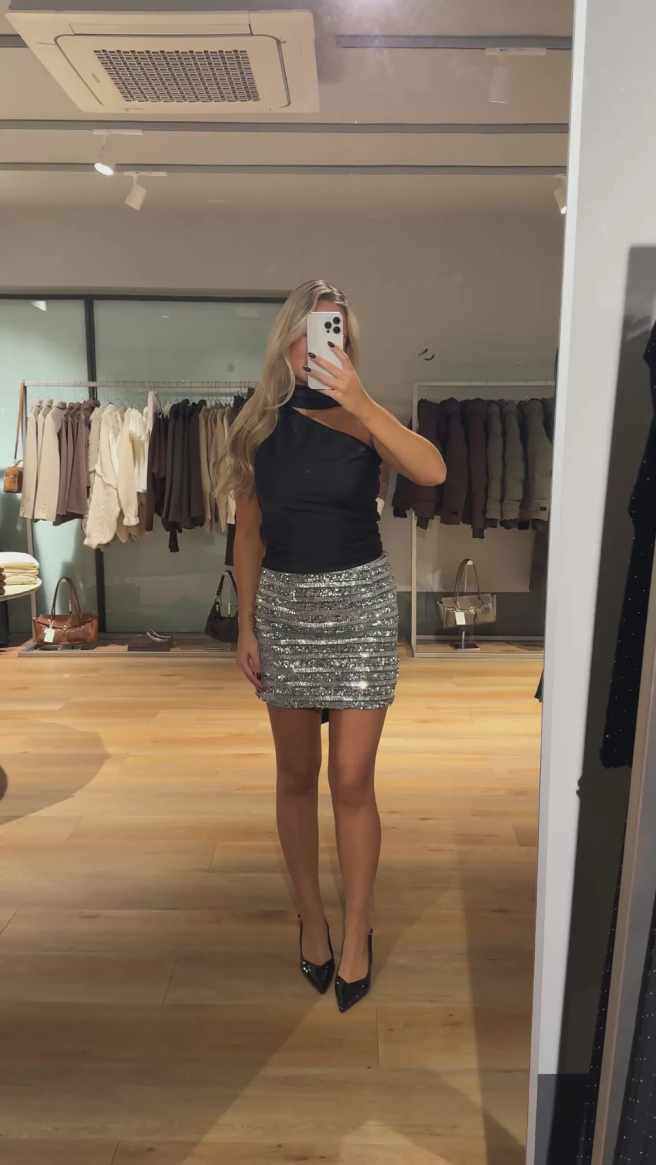 Teresa glimmer nederdelen har det fineste mønster i stoffet. Den er tætsiddende og perfekt til en aften fyldt med glimmer og glitter. Den smukke nederdel er perfekt til en glimmer fest og til nytår.