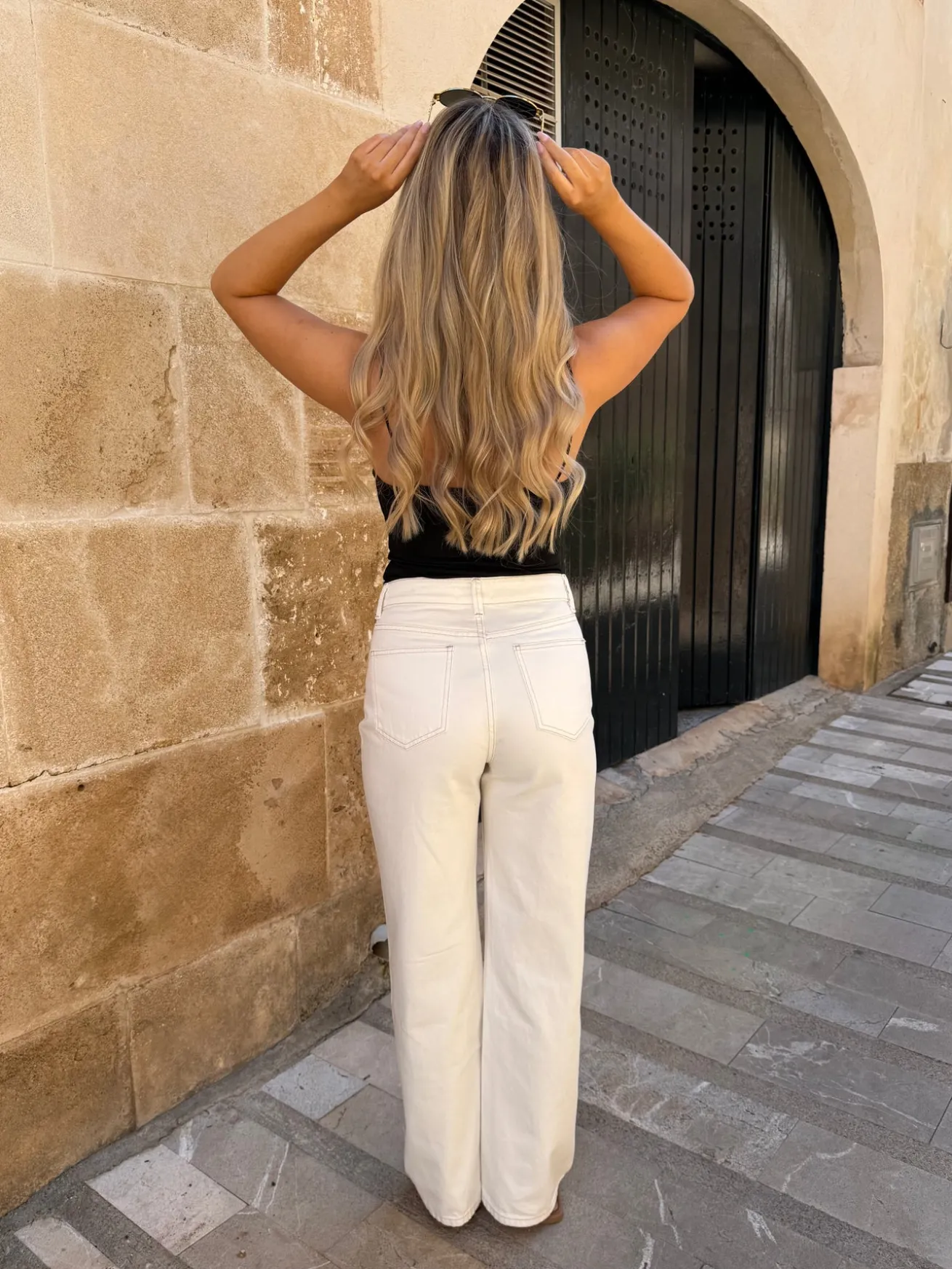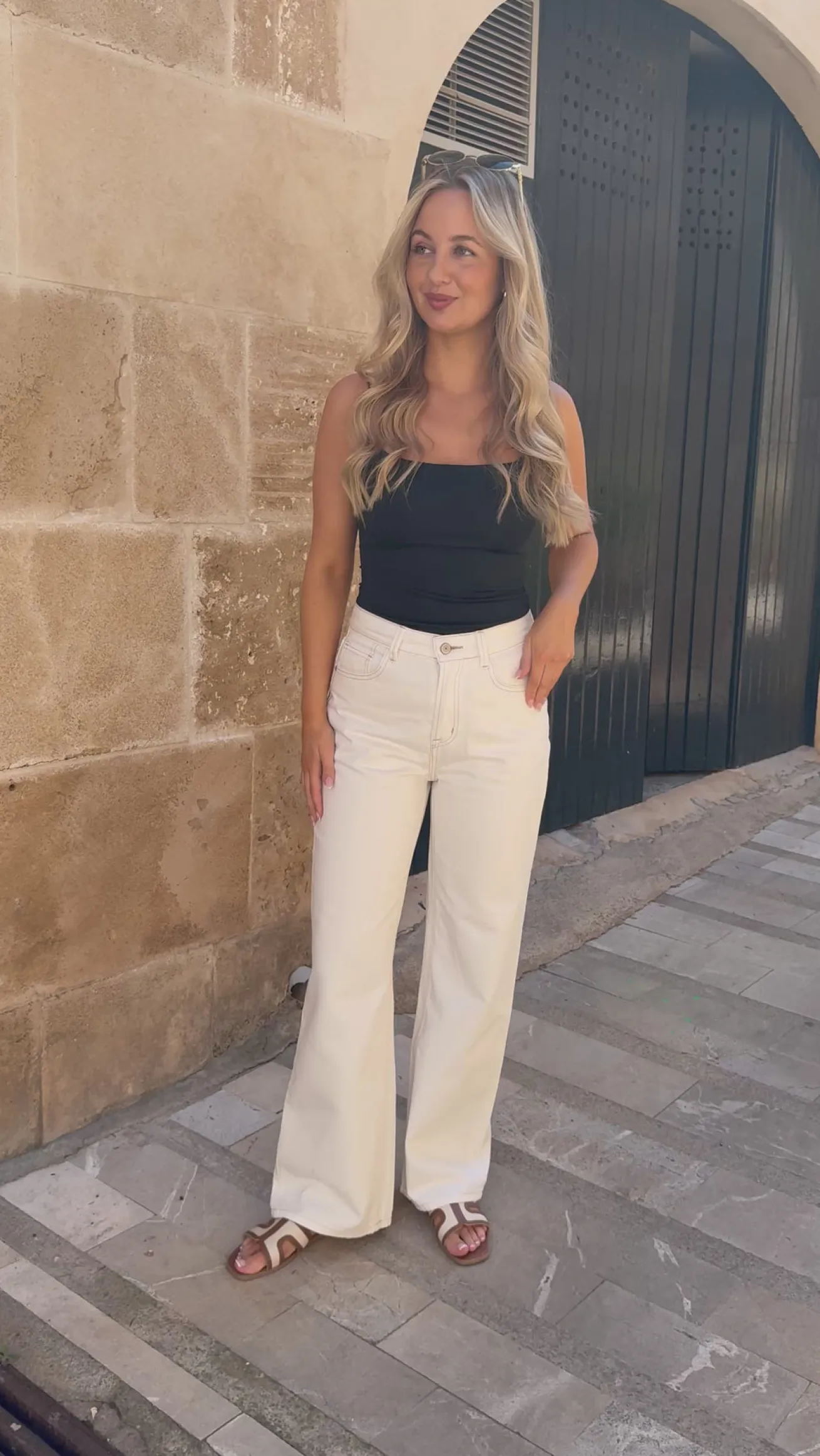Valeria bukserne har de fineste detaljer med de brune syninger. Bukserne går til anklen og er perfekte til forår og sommer.
