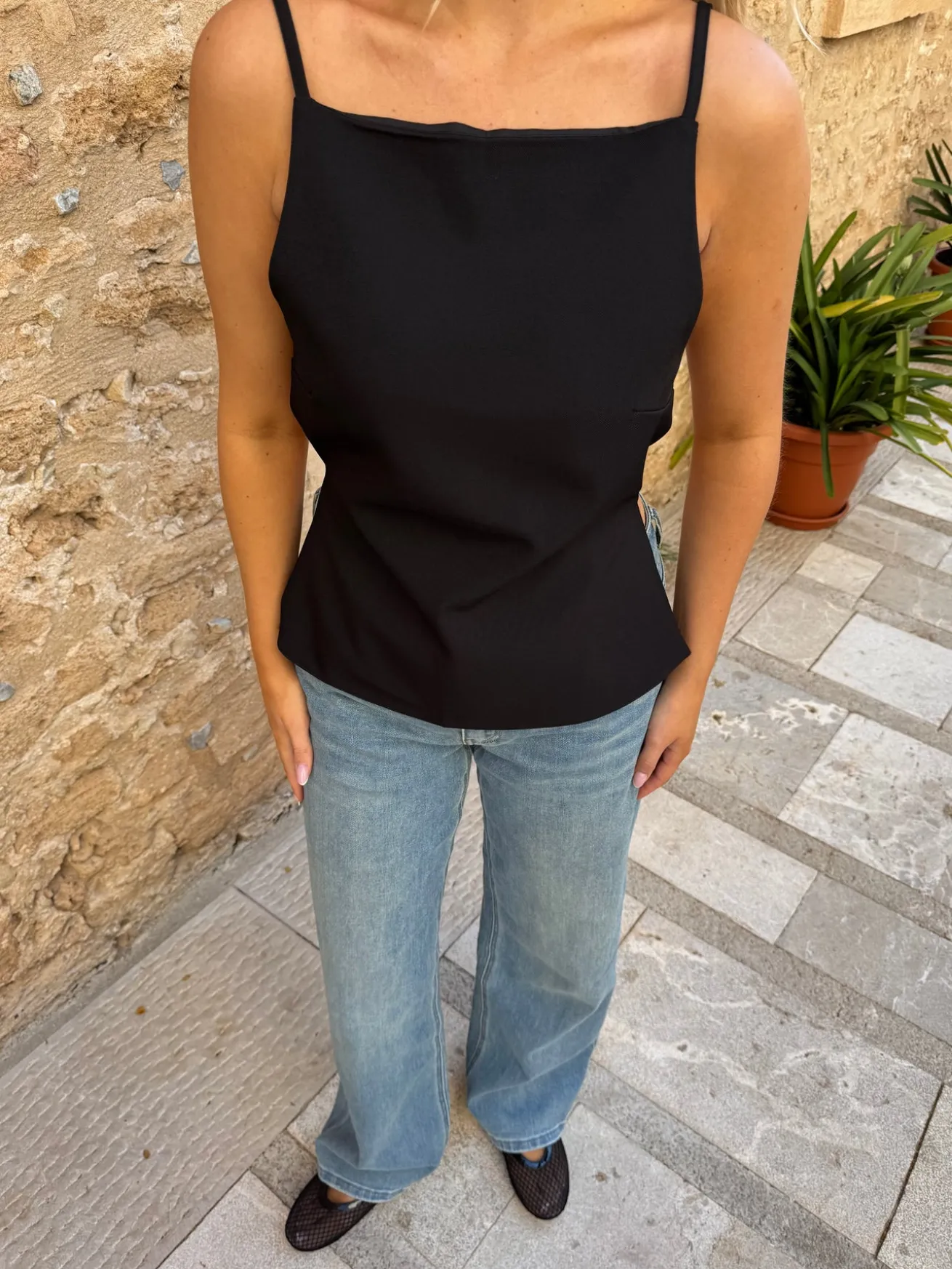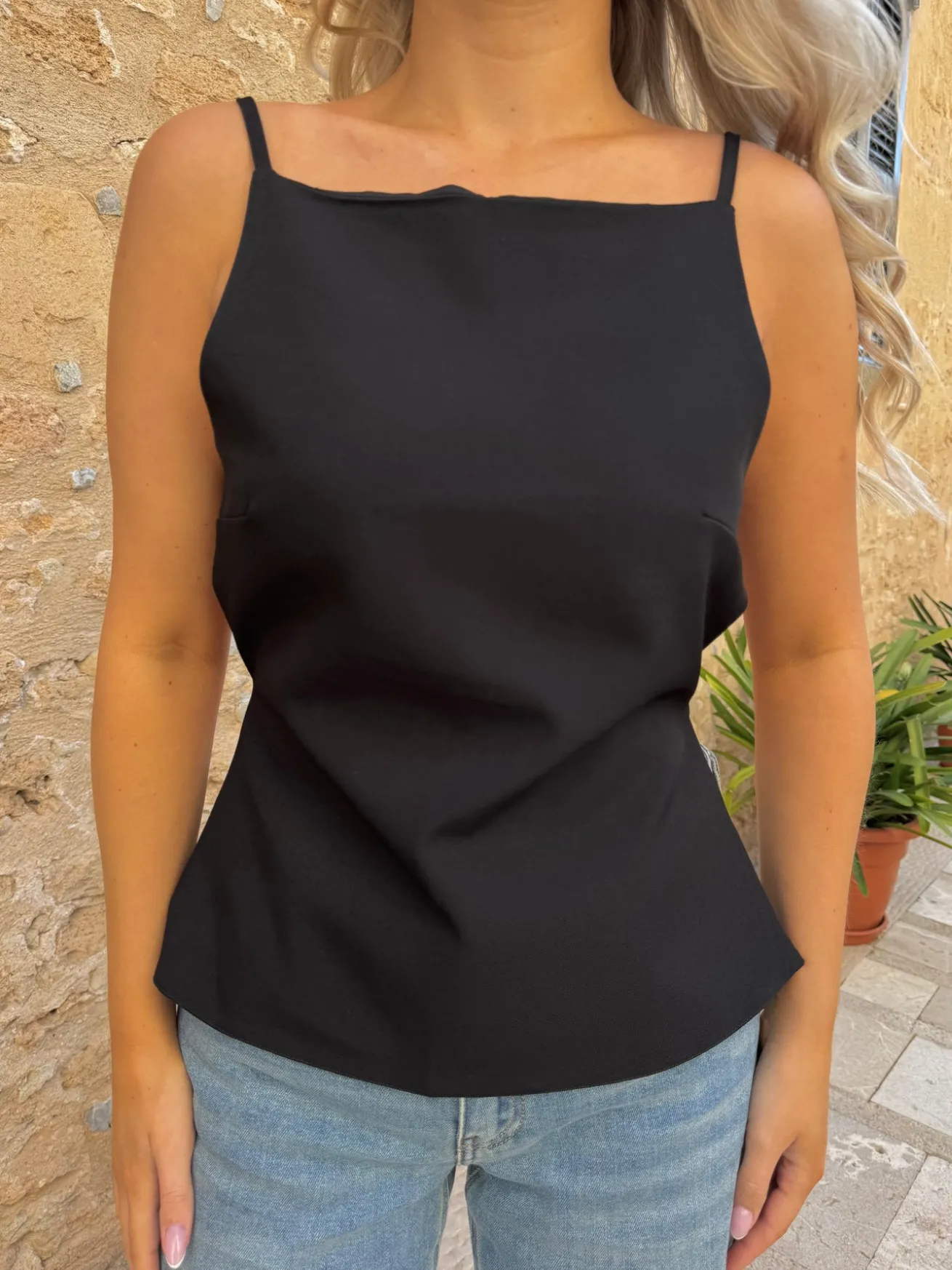 Amelia toppen er åben på ryggen og har to justerbare stropper, så du kan justere den, så den passe netop dig. Den er perfekt til både hverdag og til fest.