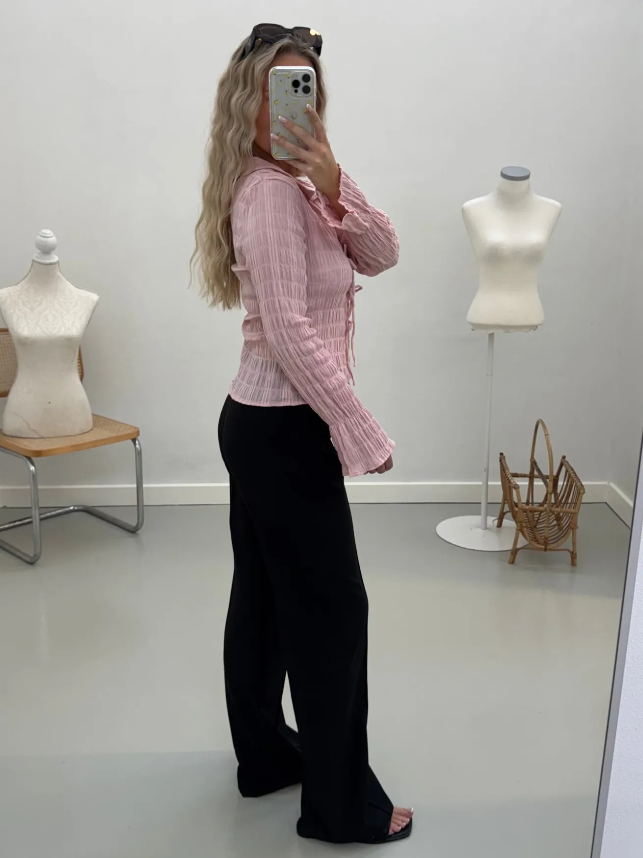 Adrianna skjorten bindes fortil og har den fineste krave. Den har brede ærmer og et rynket stof. Den er helt perfekt til hverdag.