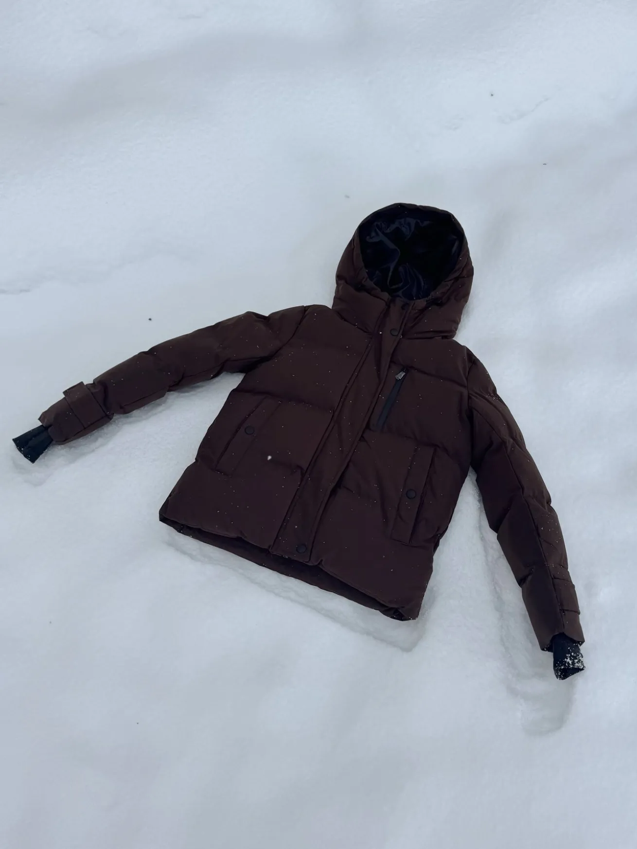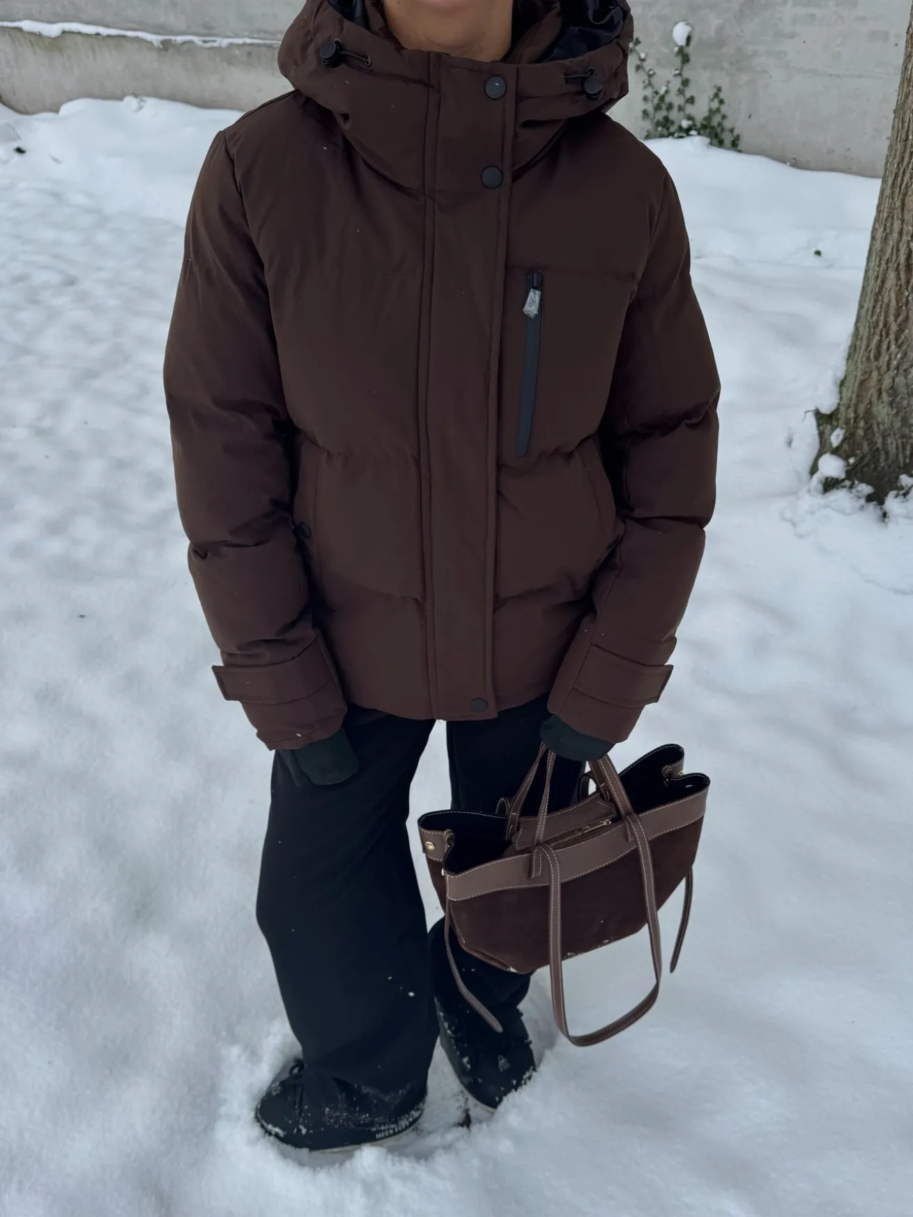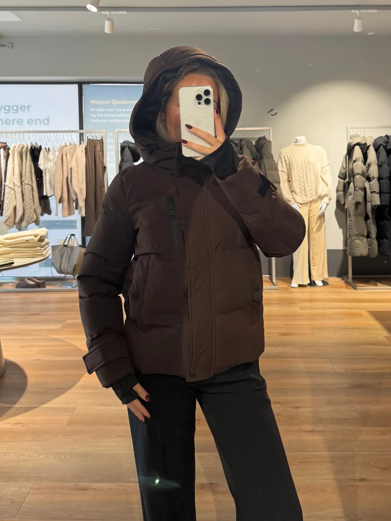 Caya jakken har har en høj hals og hætte den har en ekstra lomme ved brystet og 2 i siden.