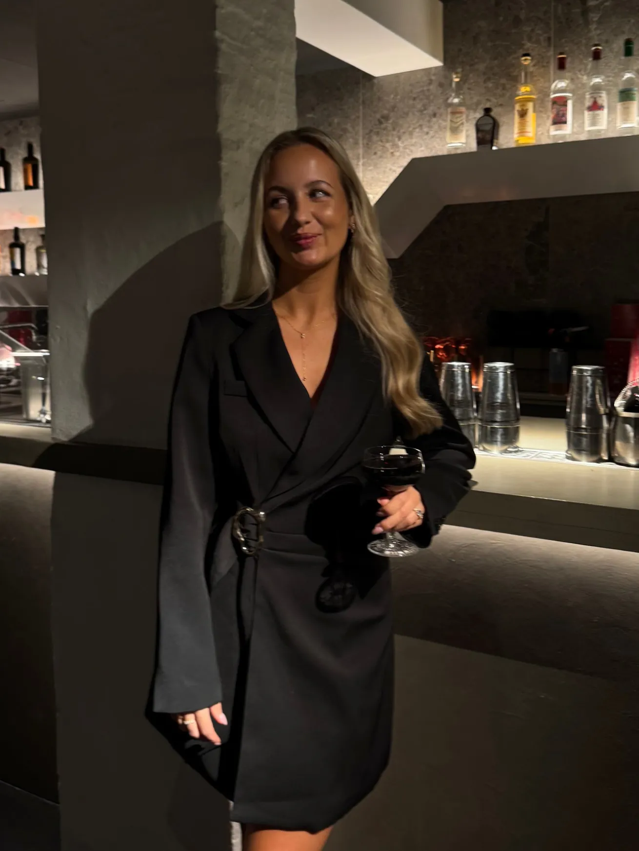 Celia blazerkjolen er perfekt til nytår og julefrokosterne. Kjolen har et spænde i siden.
