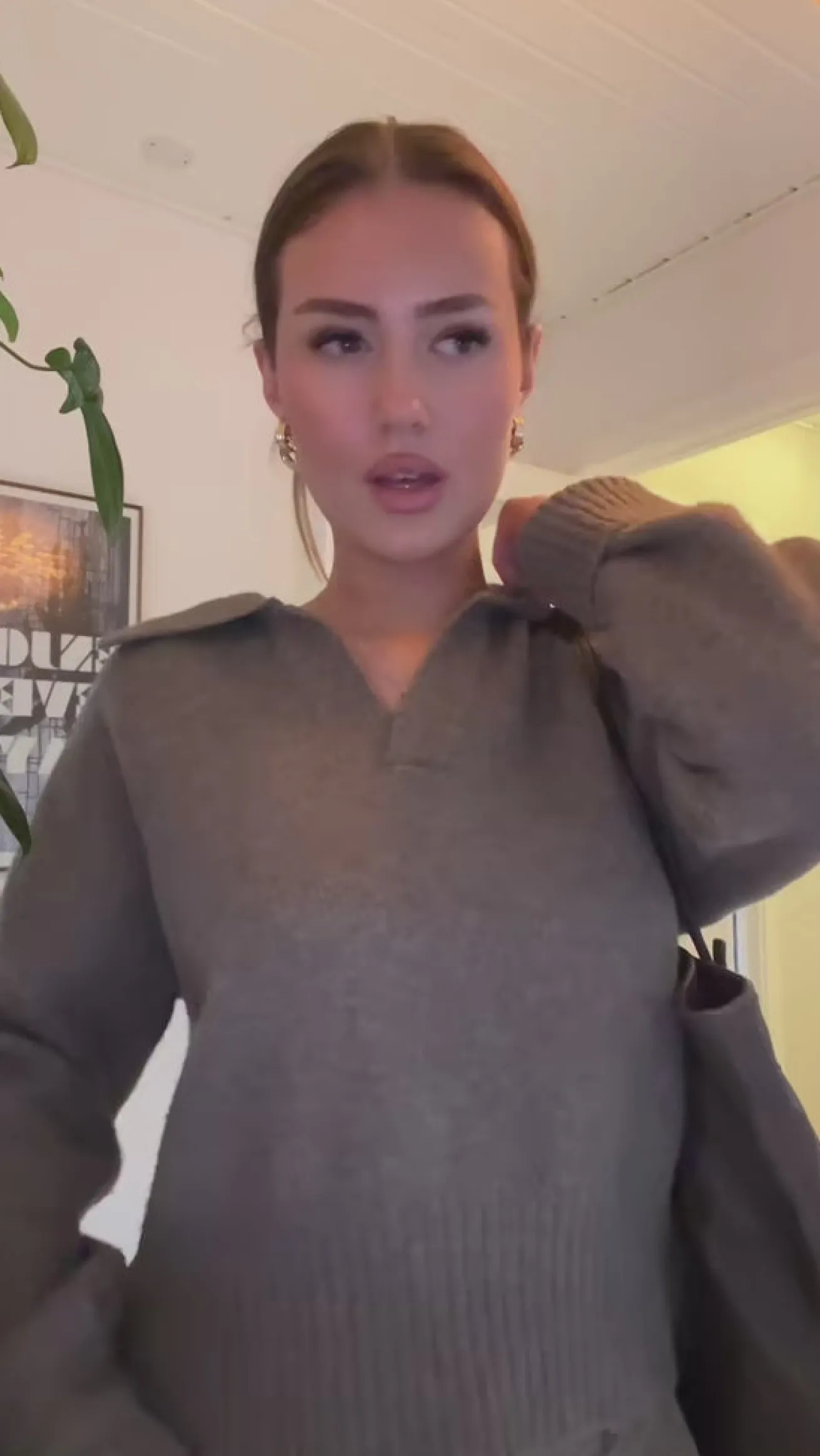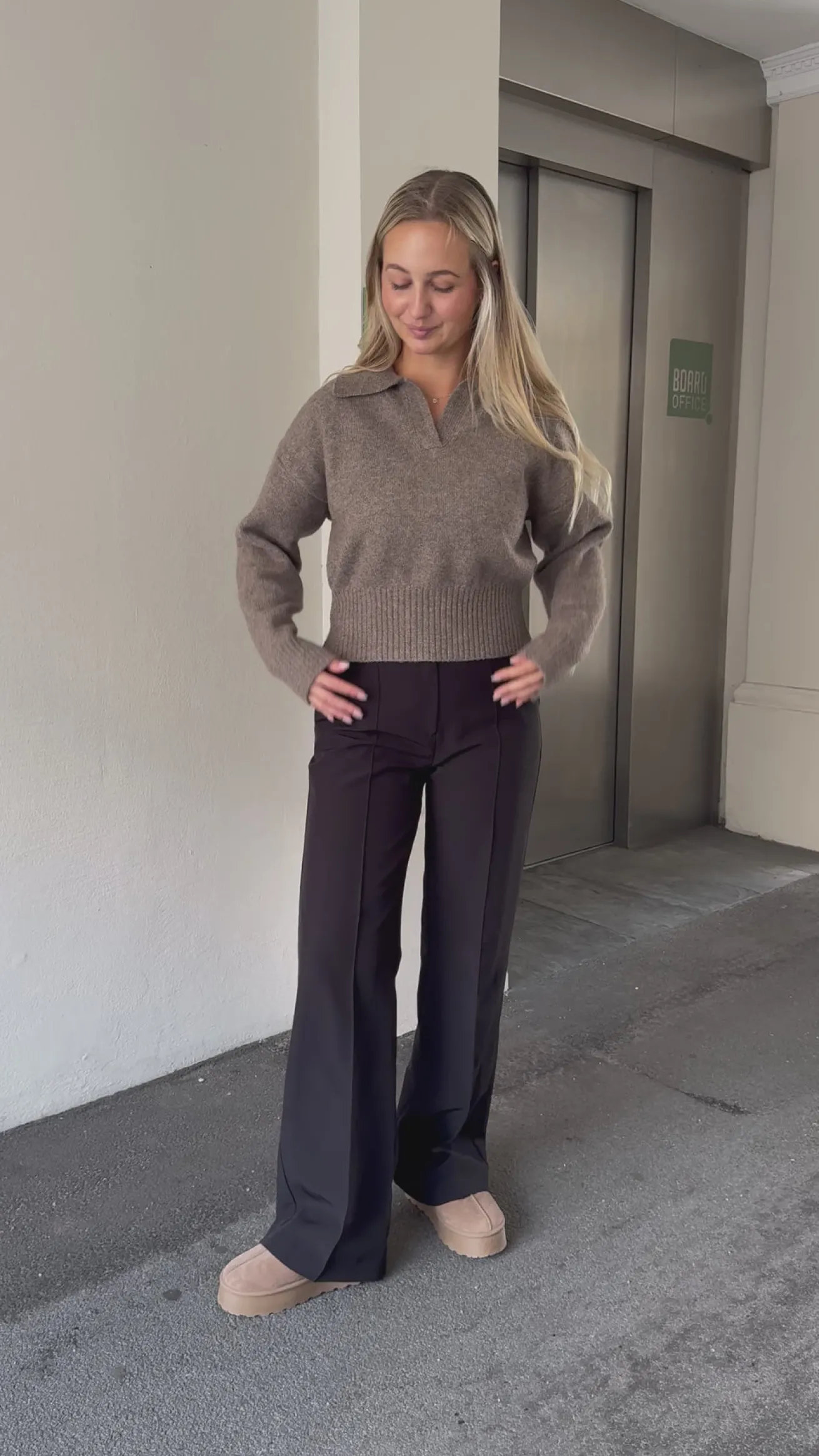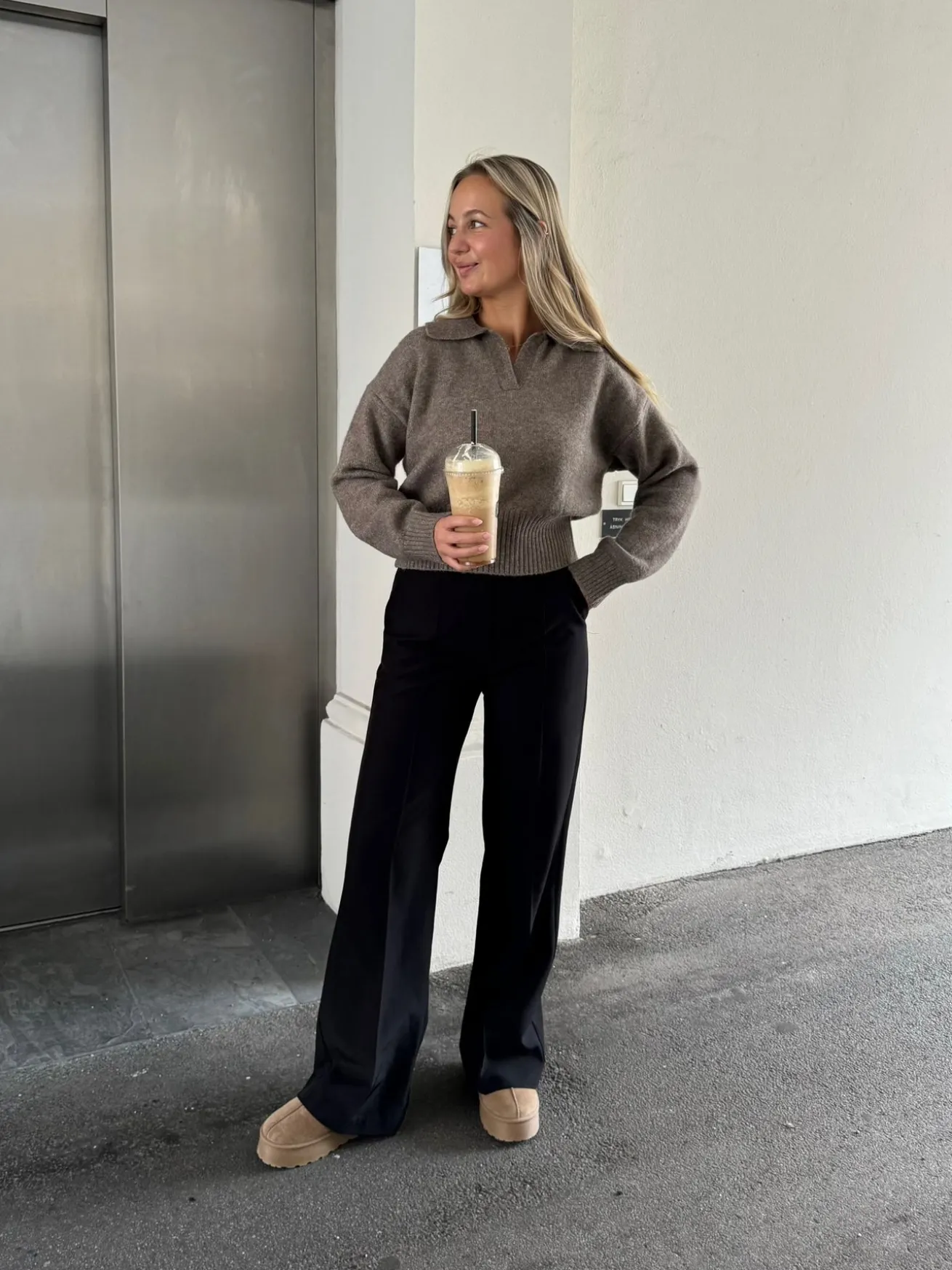 Elina strikken har den fineste krave og går ind omkring taljen og ned til hoften, så man får en flot figur. Den er blød og behagelig og ser vildt flot ud med et par Milly bukser.