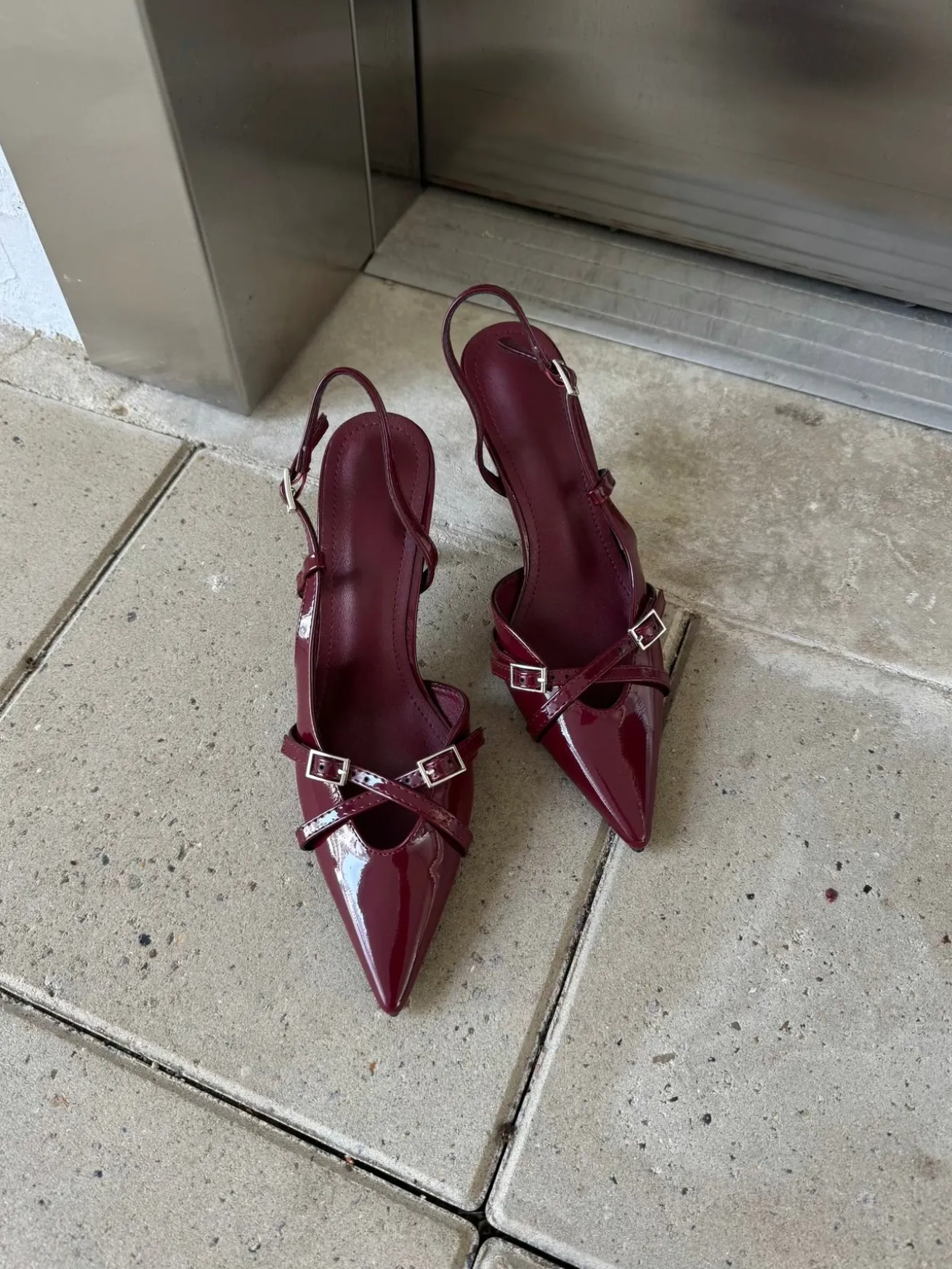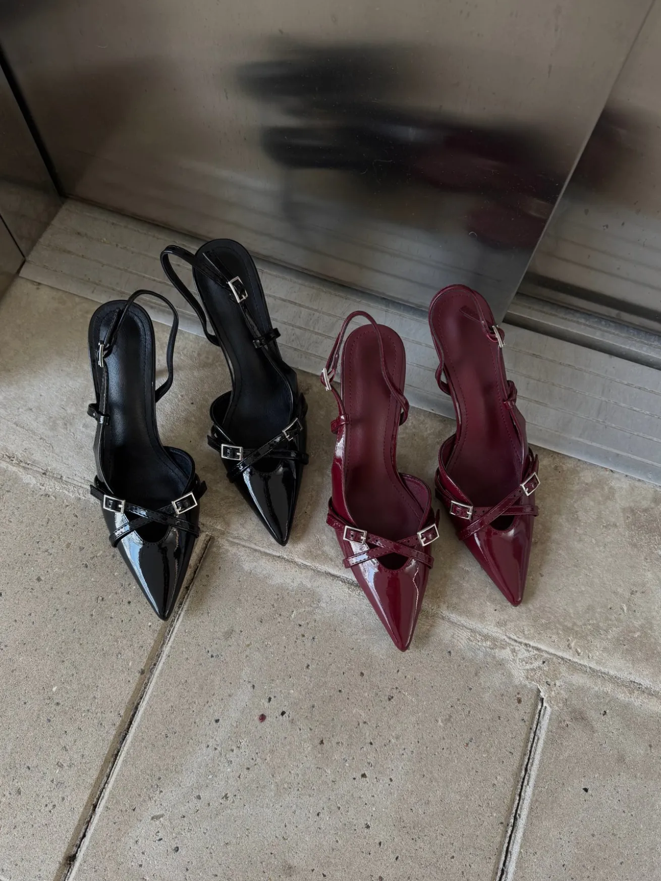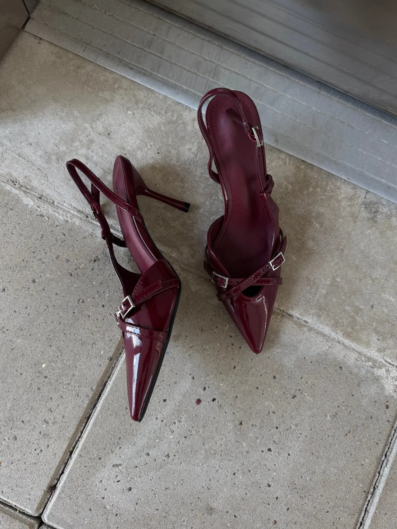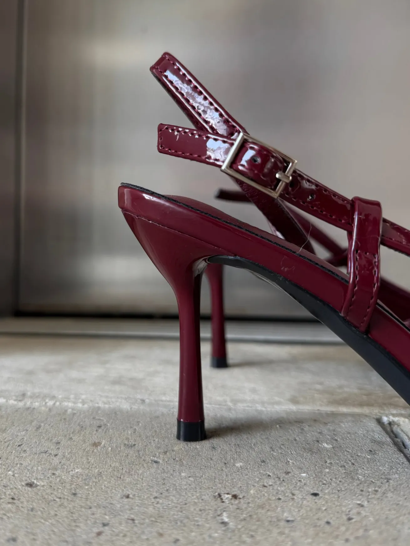 Flora stiletterne er perfekte til festlige begivenheder og kan også bruges til hverdag. Der er en justerbar rem omkring hælen, som kan justeres. der er to remme foran på stiletten som giver stiletten et råt look.