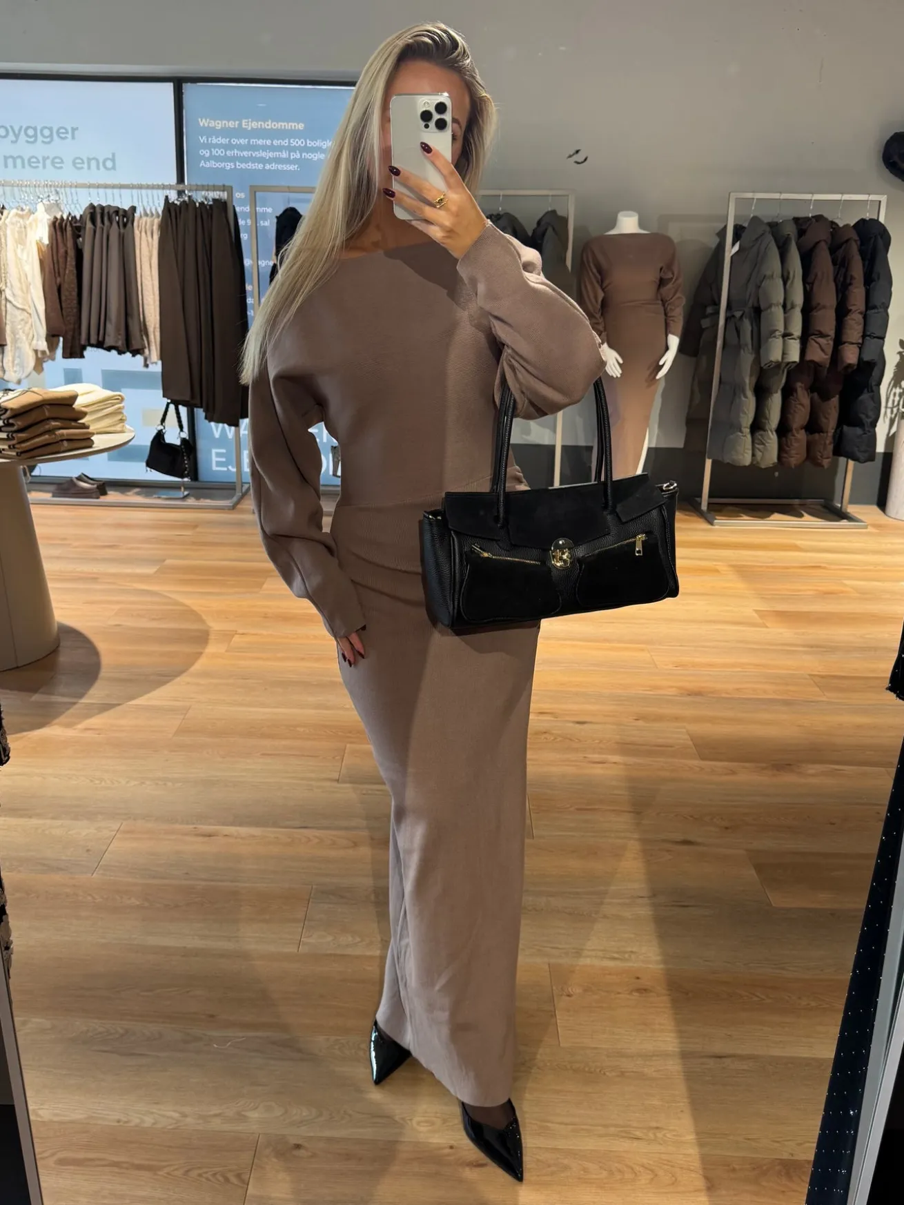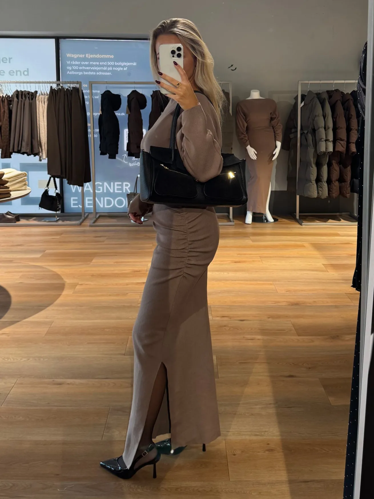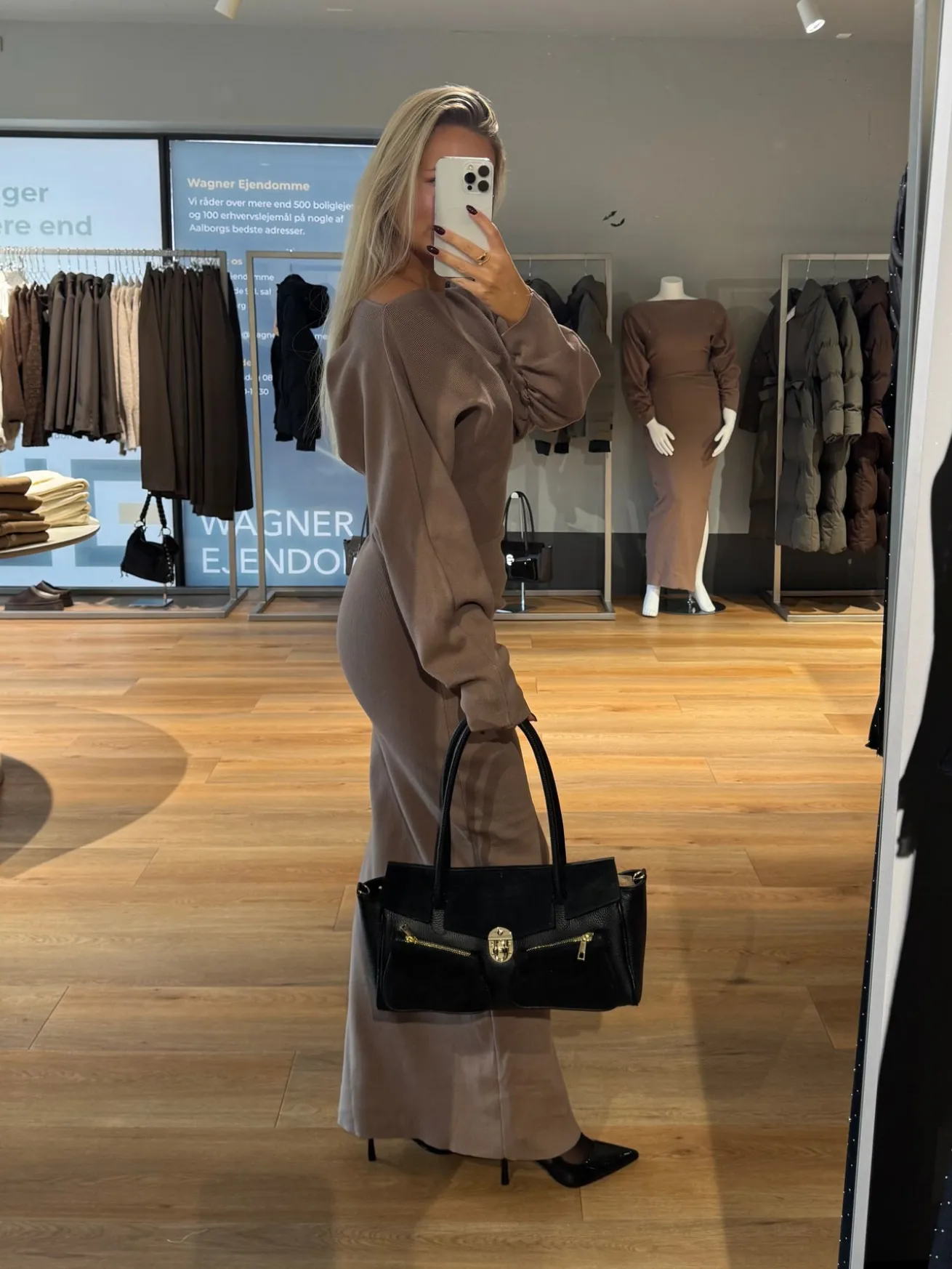 Jenny strikkjolen er perfekt til efteråret – den fine strik holder dig varm på de kolde dage. Den har scrunch i siden og på ærmerne, som giver den ellers klassiske kjole et pint.