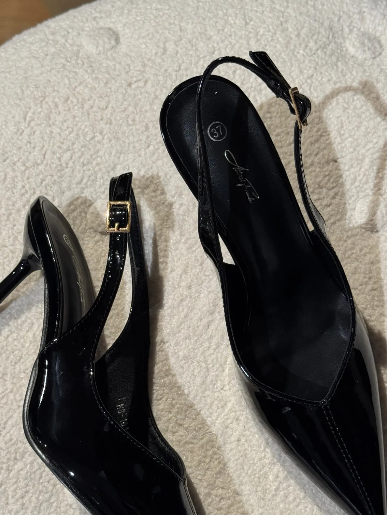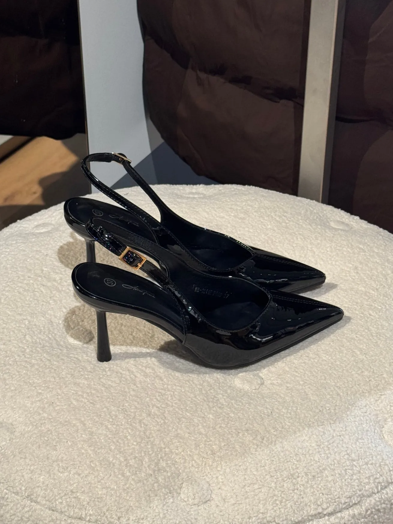 Karla stiletterne har et spids snude og har en rem bagtil som kan justeres efter ønske. Stiletten er perfekt til efteråret og har den smukkeste farve.