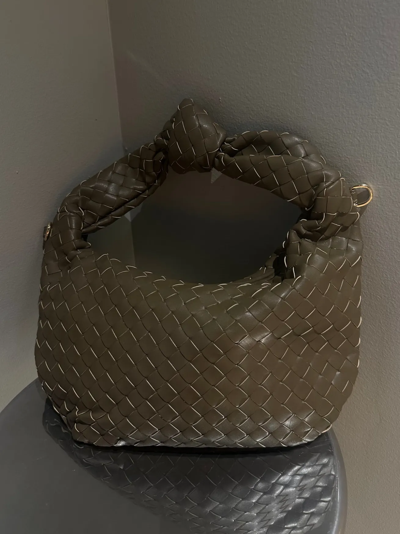 Maja tasken skinner så fint. Den har en ekstra guldkæde hvis man gerne vil bruge den som en cross-body taske.