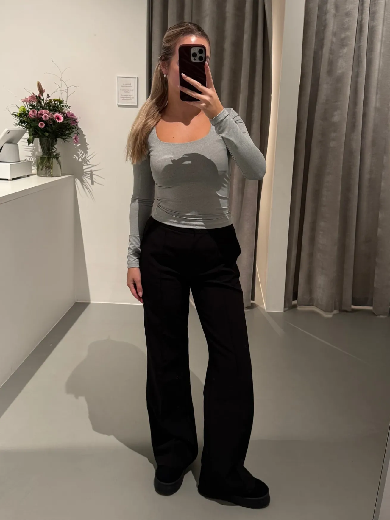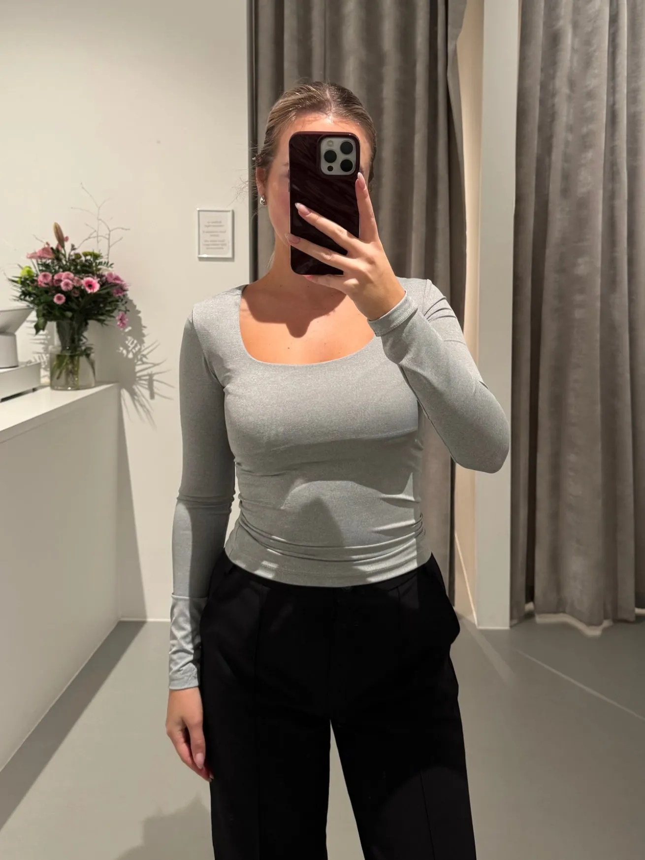 Malou er strækbar og har den fineste udskæring, som runder. Blusen er perfekt til hverdag.