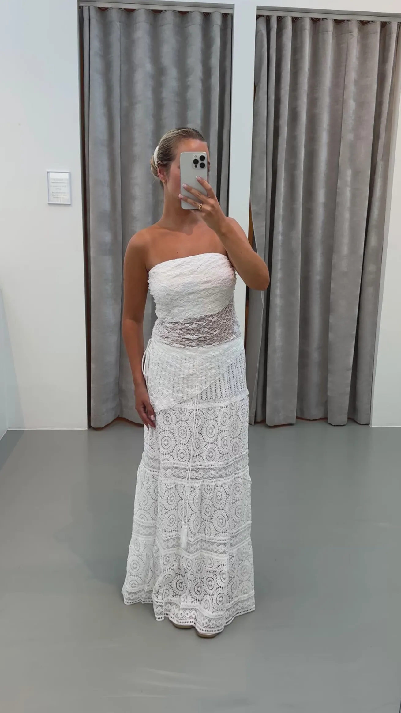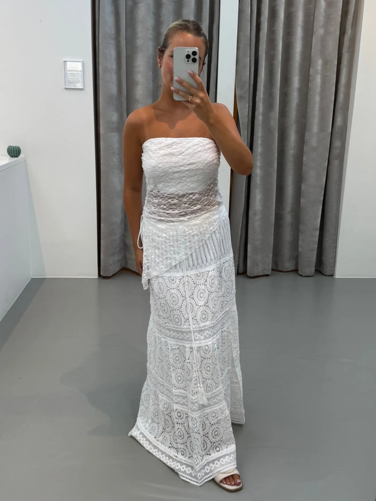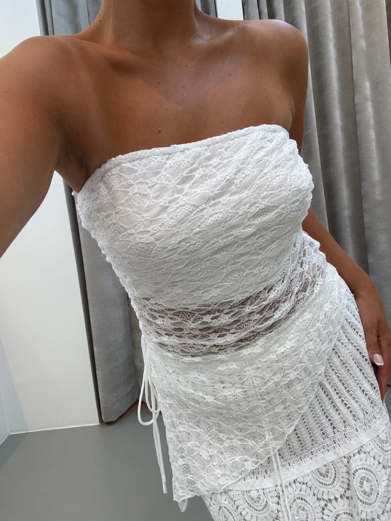 Rebecca toppen har en asymmetrisk udskæring i bunden. Den bindes i siden.