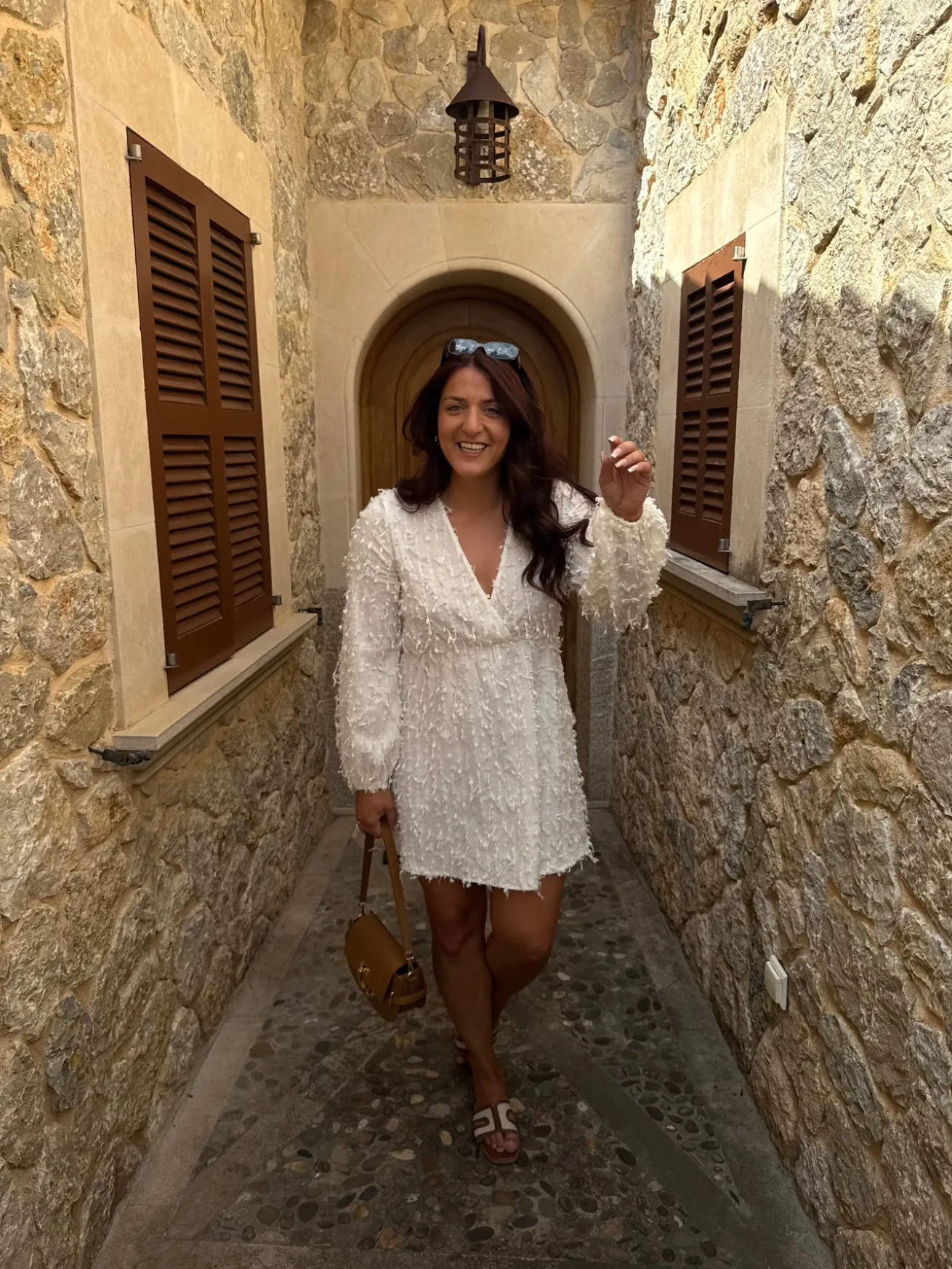Sofie kjolen er perfekt til studenterfesterne og alle sommerfesterne. Den har ruffels i stoffet og ballon ærmer. Den har en dyb v-udskæring.