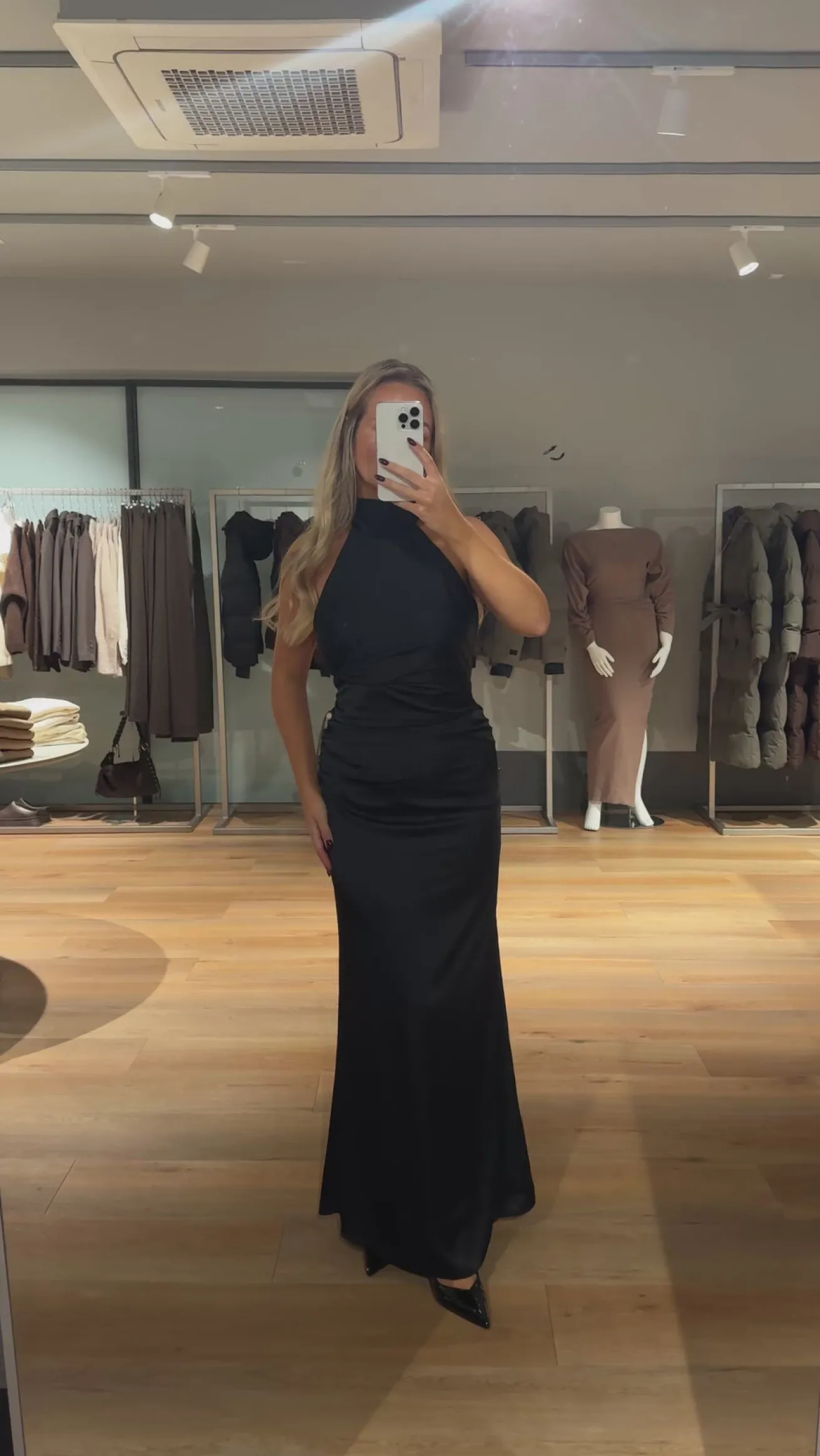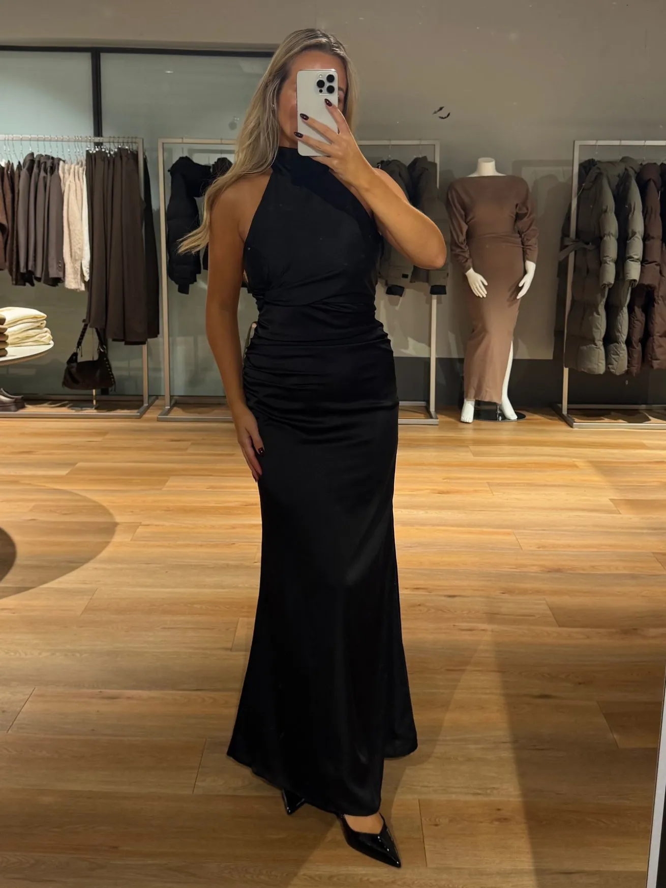 Stephanie kjolen har et glansfuldt look, den bindes i nakken og og har en åben ryg. Den er helt perfekt til årets sidste fester. Den smukke kjole er helt perfekt til fine begivenheder og til nytår.