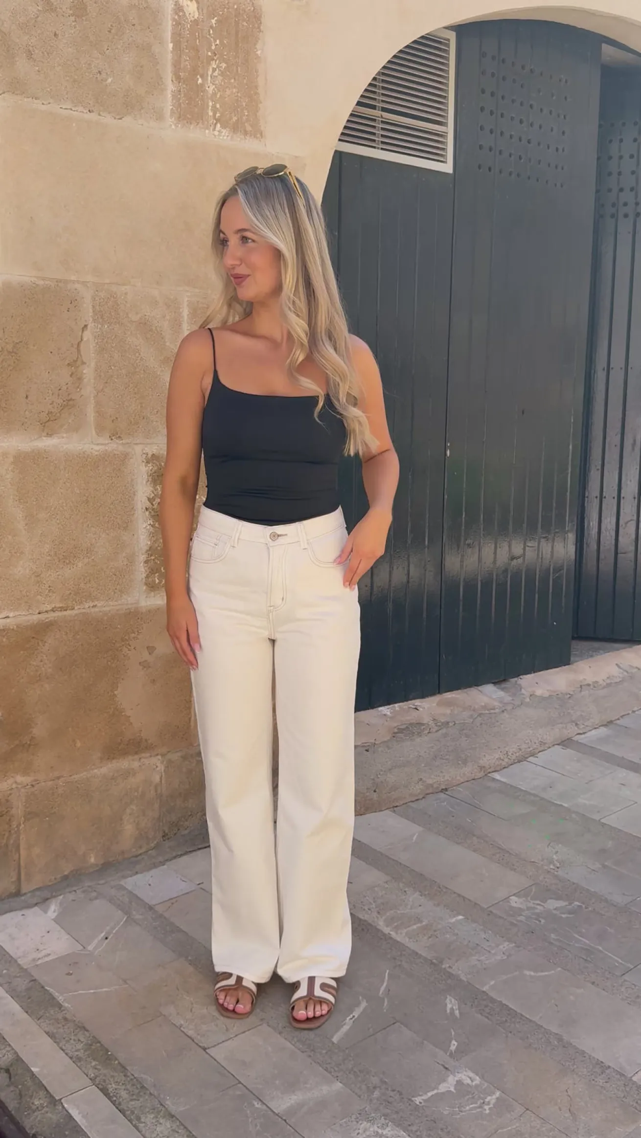 Valeria bukserne har de fineste detaljer med de brune syninger. Bukserne går til anklen og er perfekte til forår og sommer.