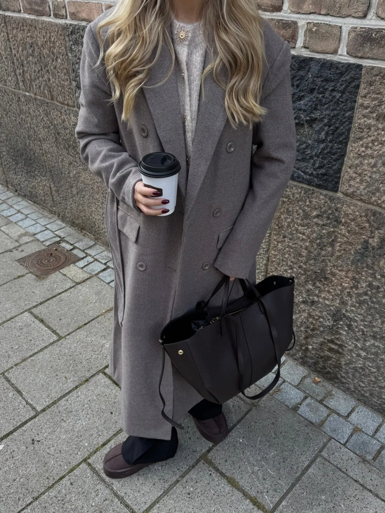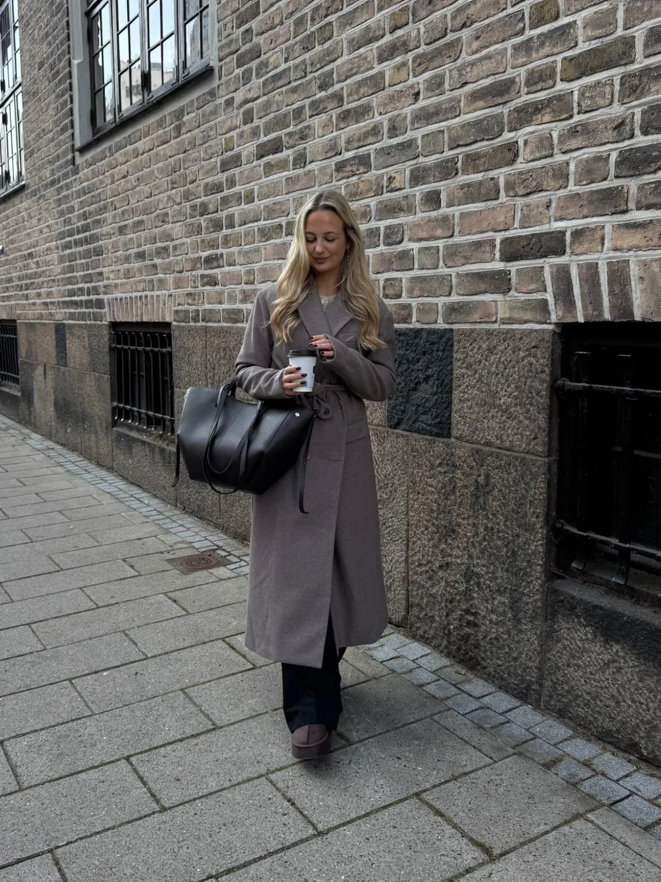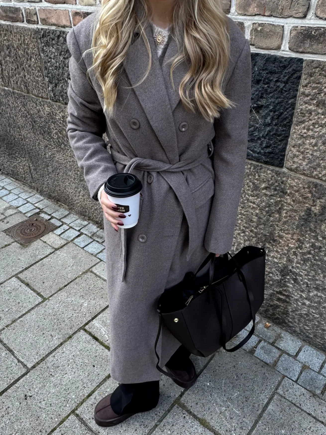 Valeria trenchcoaten har både bælte og knapper. Den er lang og helt perfekt til efterår og vinter. Den har en v-udskæring og et oversized look.