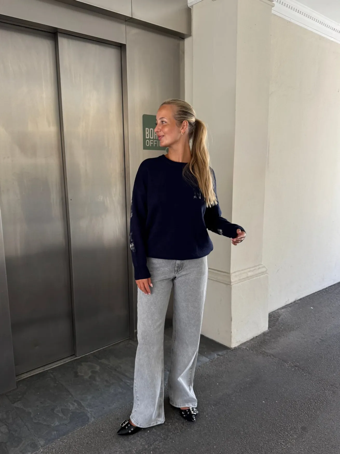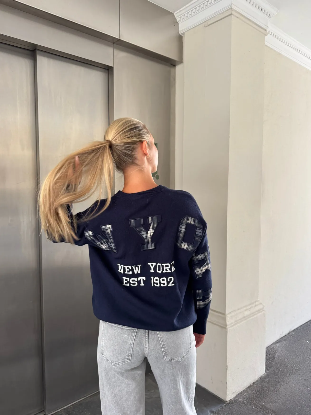 Victoria strikken har tryk på ryggen – den har et klassisk sweatshirt cut og er perfekt til efteråret og de kolde dage.