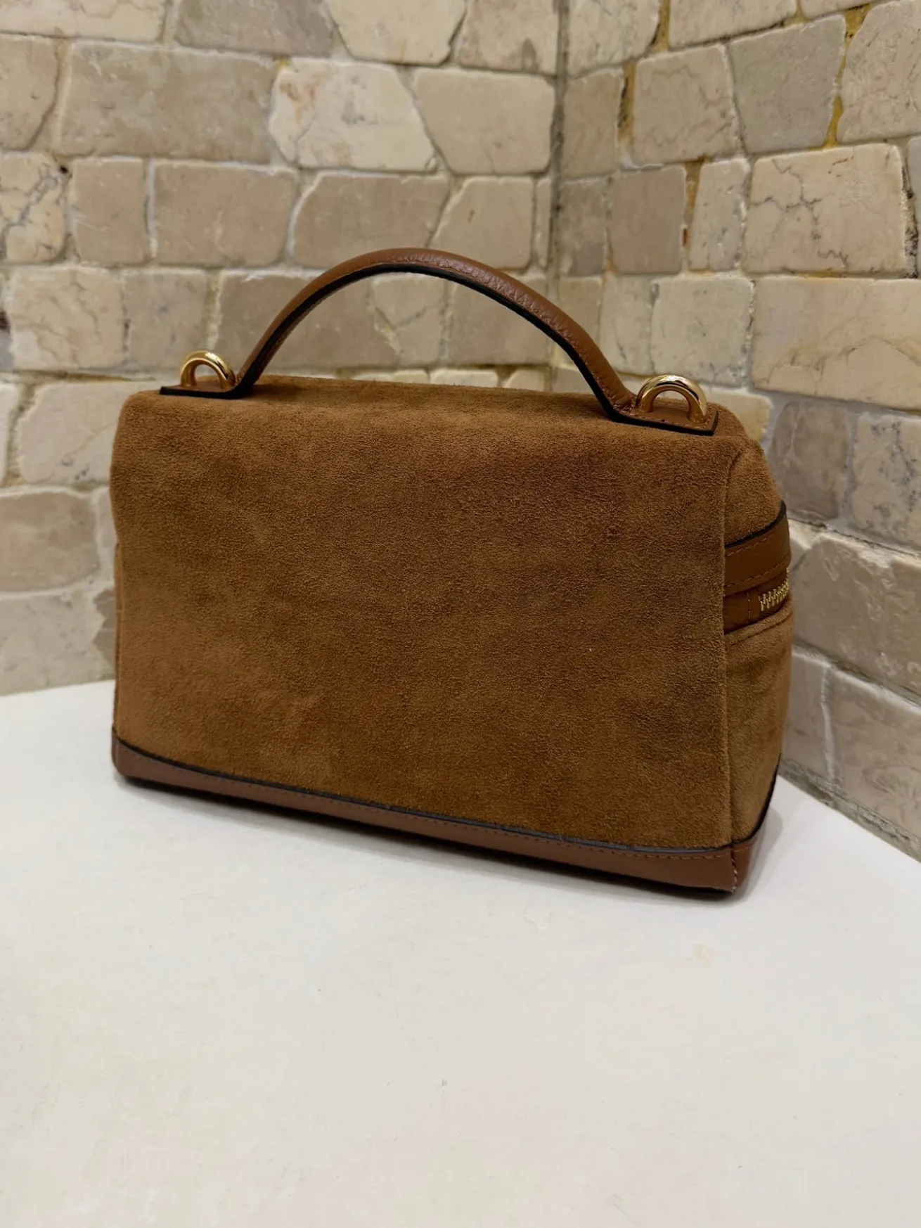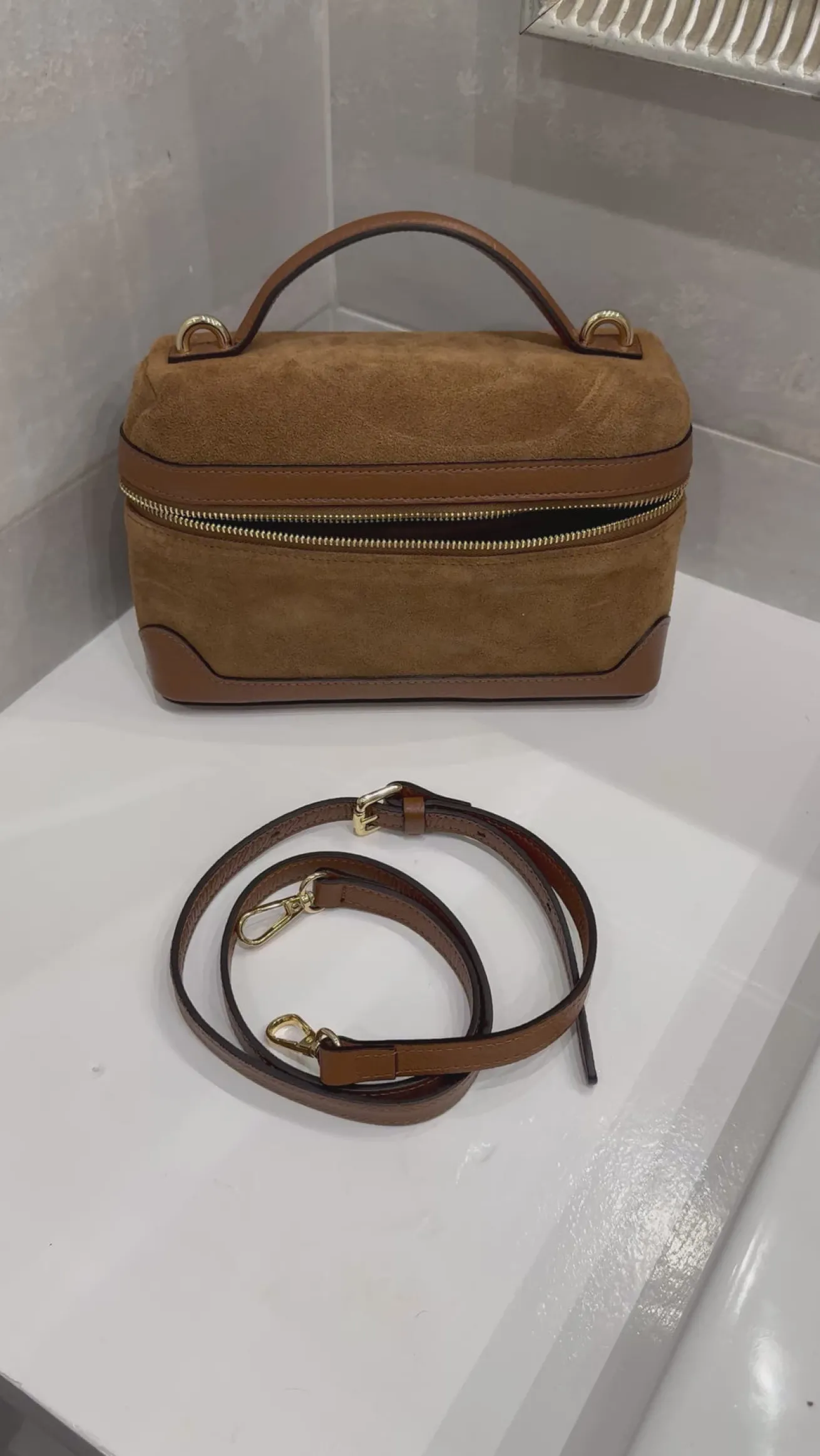 Yasmin tasken i 100% læder. Der medfølger en længere strop, så man nemt kan have den med på farten. Kan også bruges som toilettaske.